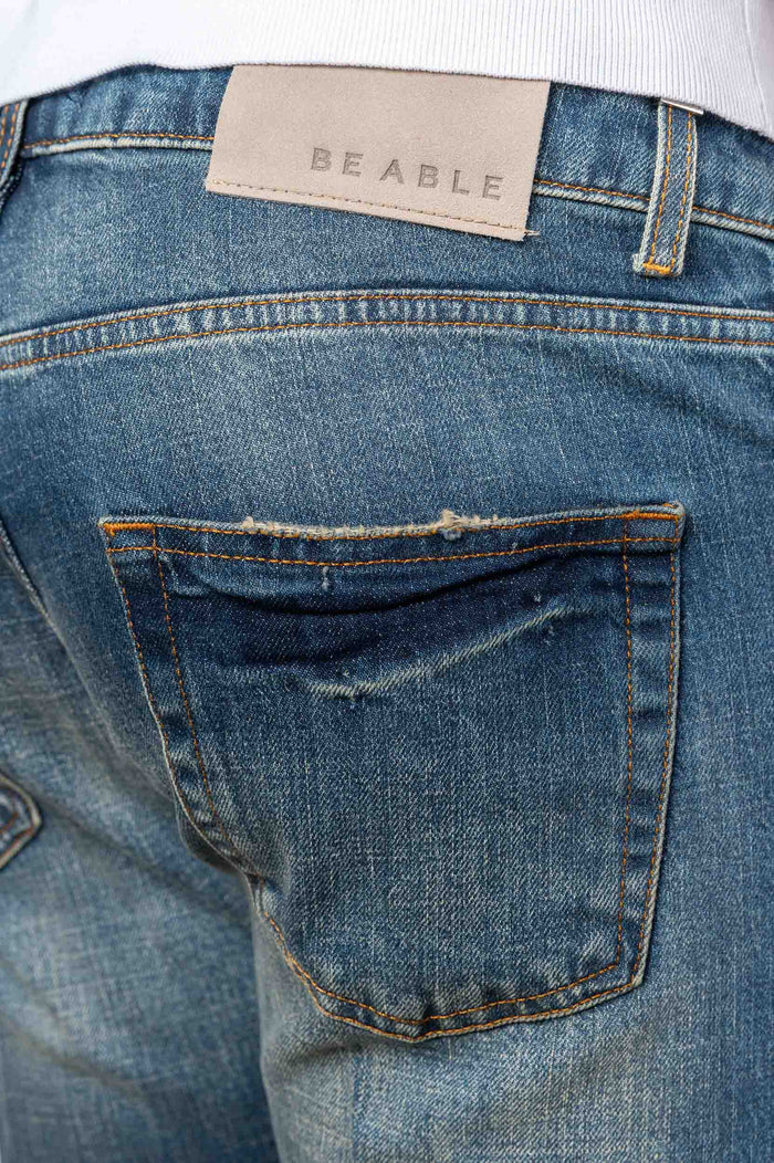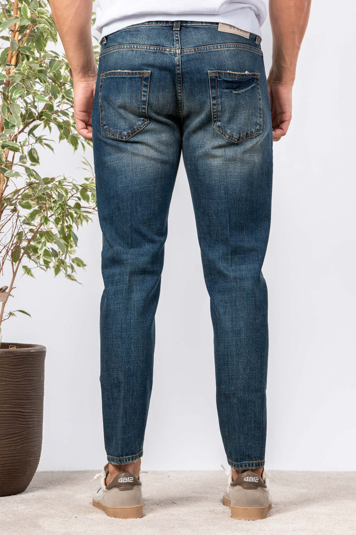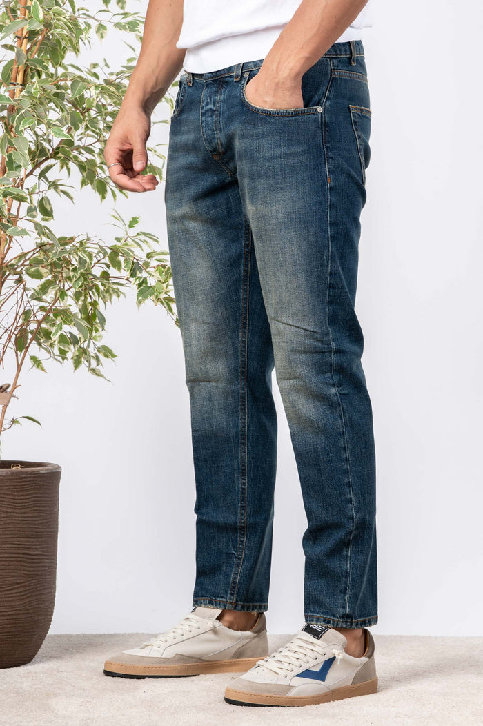 - Vita regolare. Cinque tasche e logo in pelle retro vita.