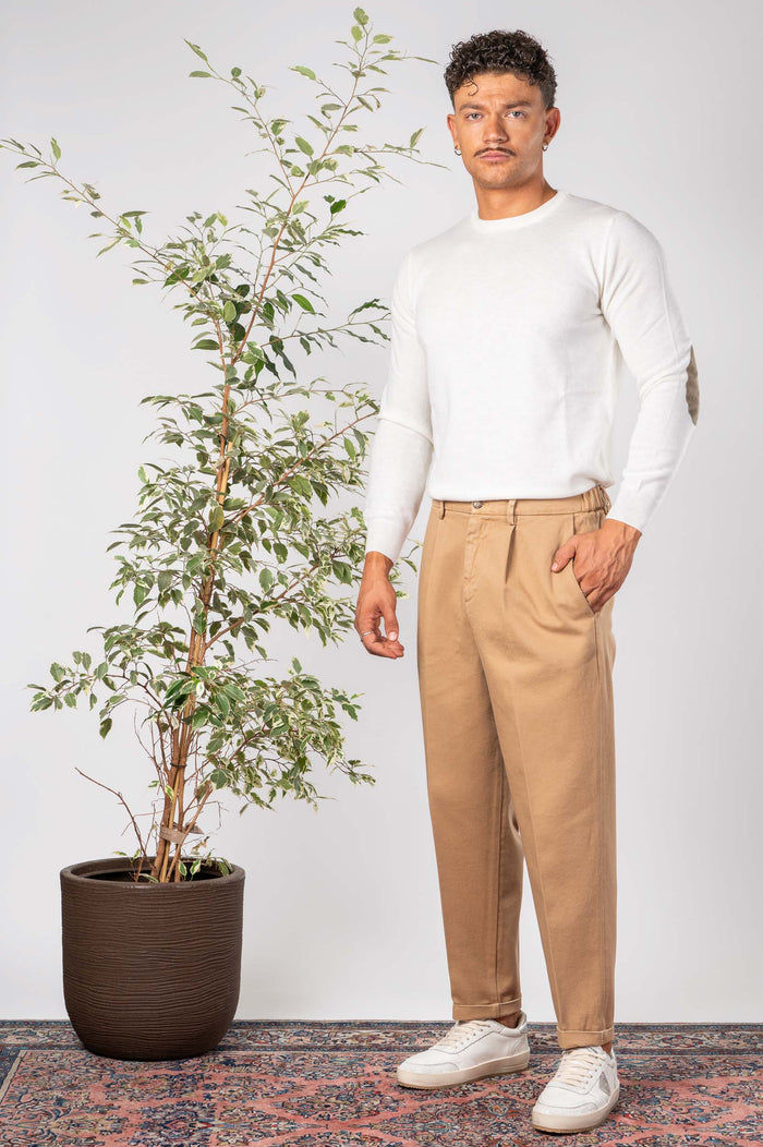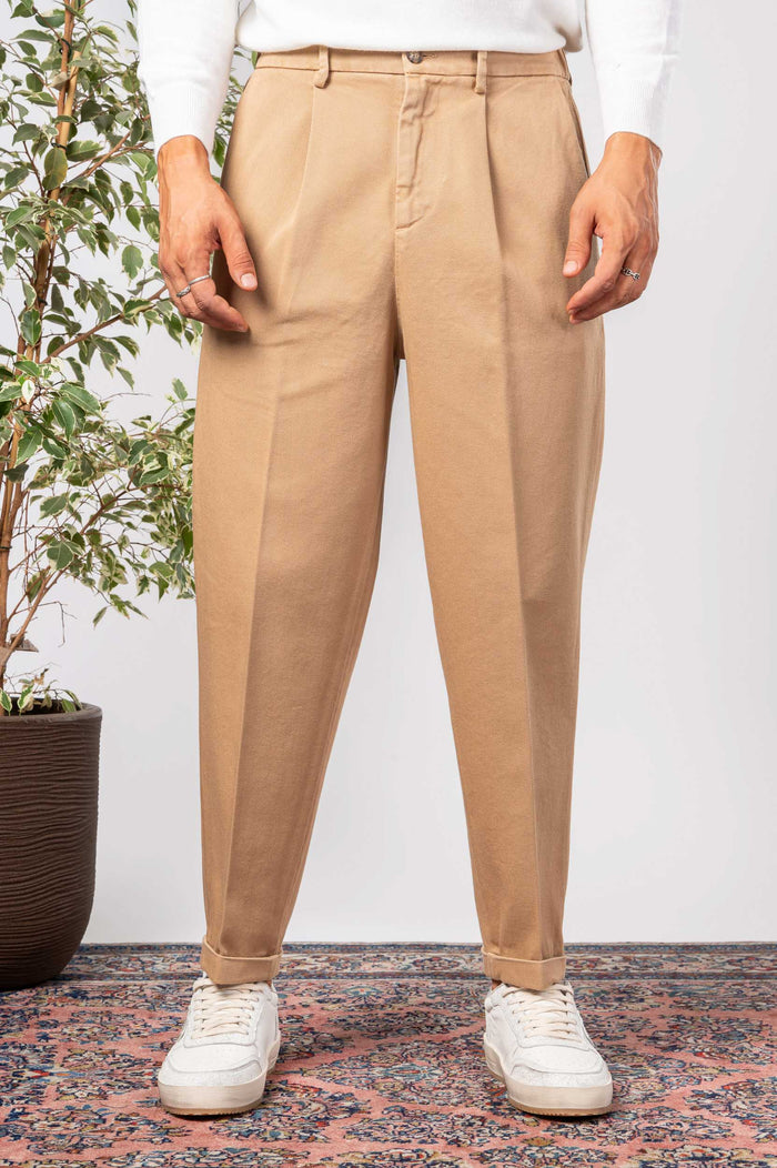 - Pantalone in cotone una pences con etichettina posteriore. Vita regolare. Tasca america anteriore, tasche posteriori a filo.
