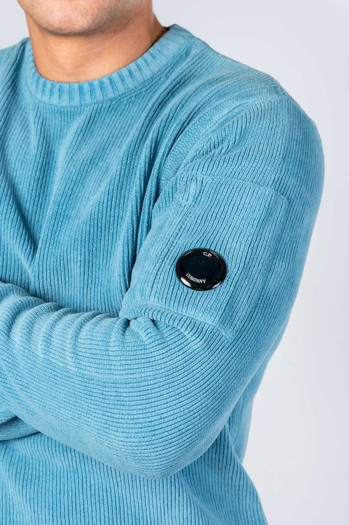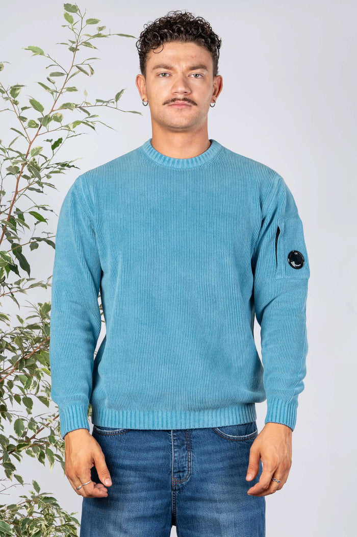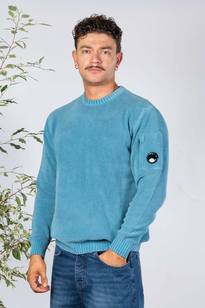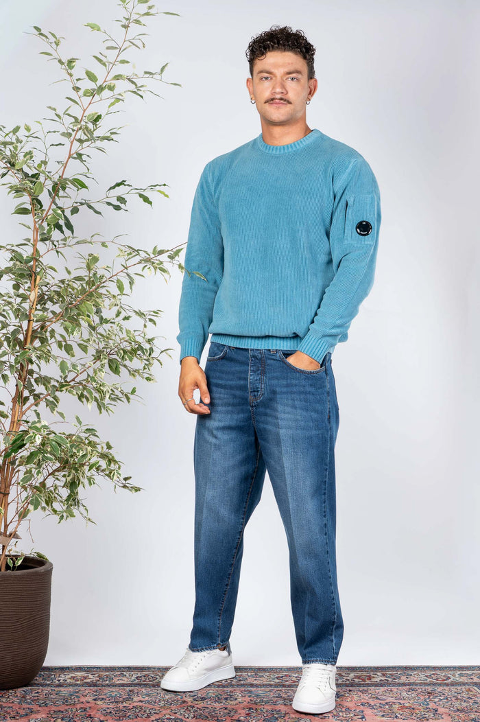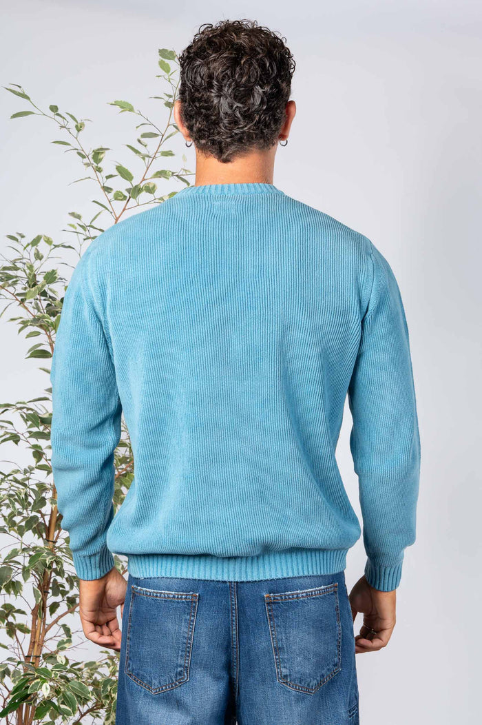 - Maglione girocollo tinta unita in cotone. Taschino sul braccio con logo iconico. Girocollo e polsini canettati. Fondo bastonetto.