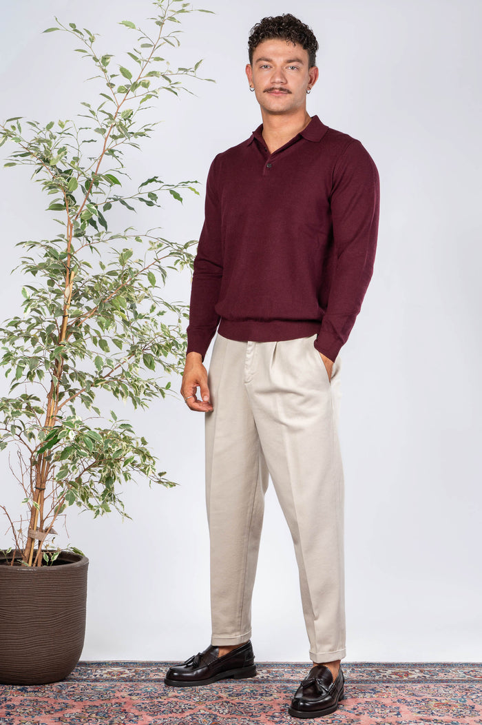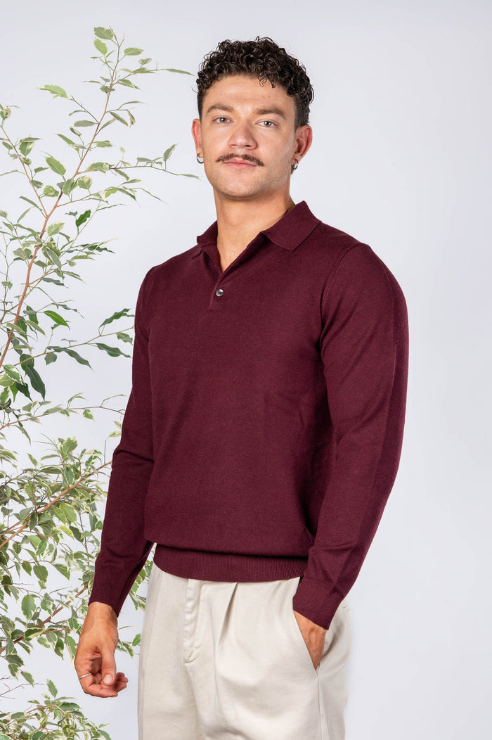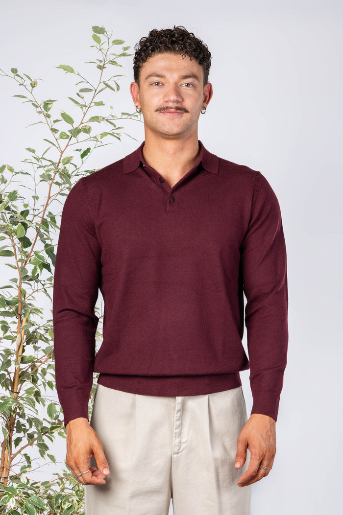 - Polo tinta unita in misto cashmere. Collo camicia con bottoni. Maniche lunghe con polsino elasticizzato. Fondo con bastonetto. Made in Italy.