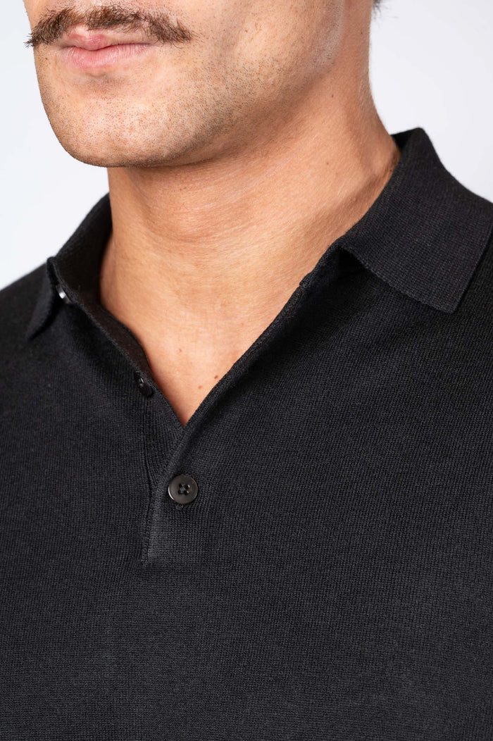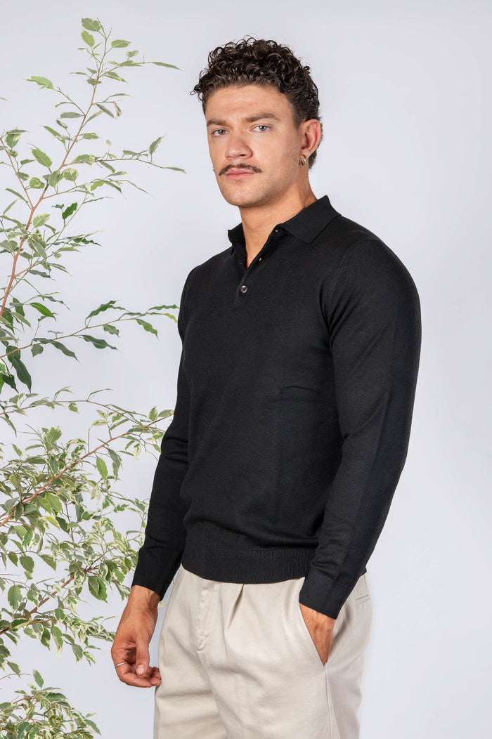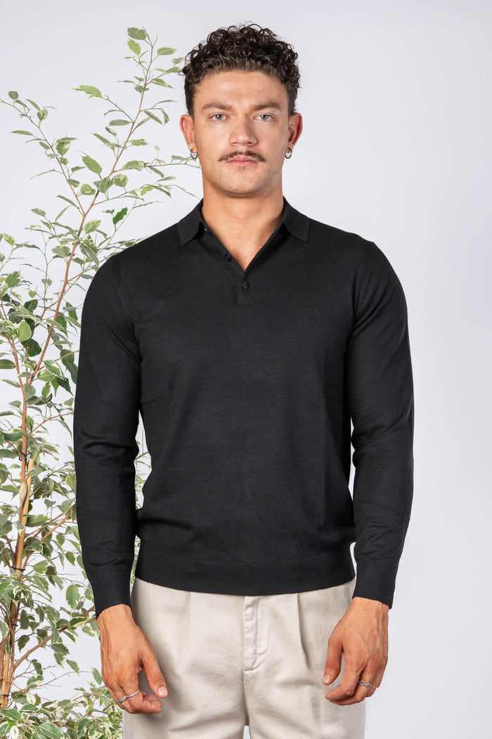 - Polo tinta unita in misto cashmere. Collo camicia con bottoni. Maniche lunghe con polsino elasticizzato. Fondo con bastonetto. Made in Italy.