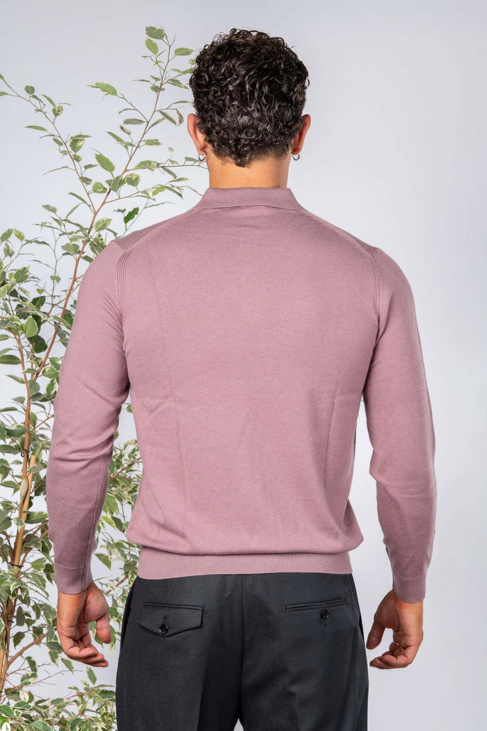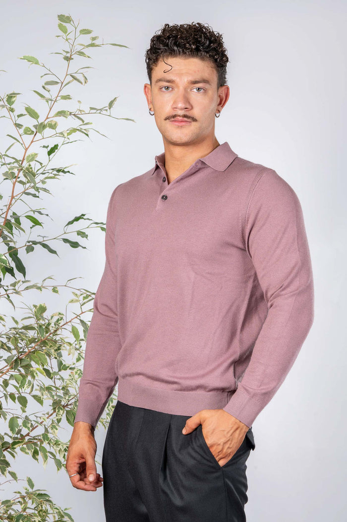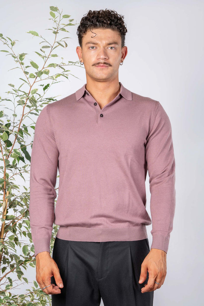 - Polo tinta unita in misto cashmere. Collo camicia con bottoni. Maniche lunghe con polsino elasticizzato. Fondo con bastonetto. Made in Italy.
