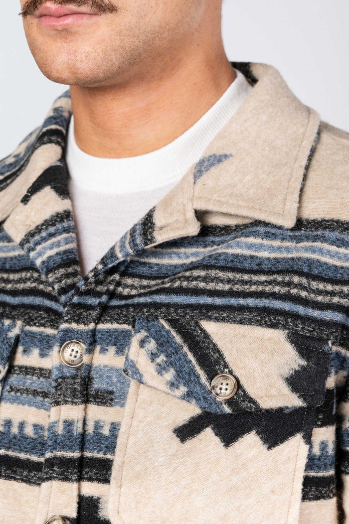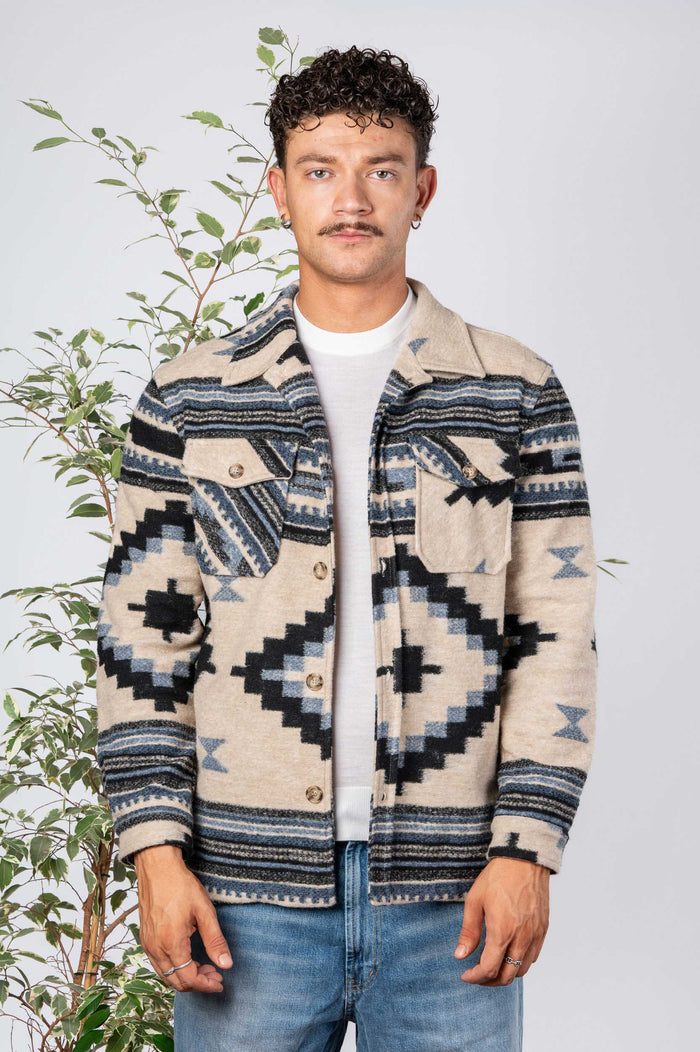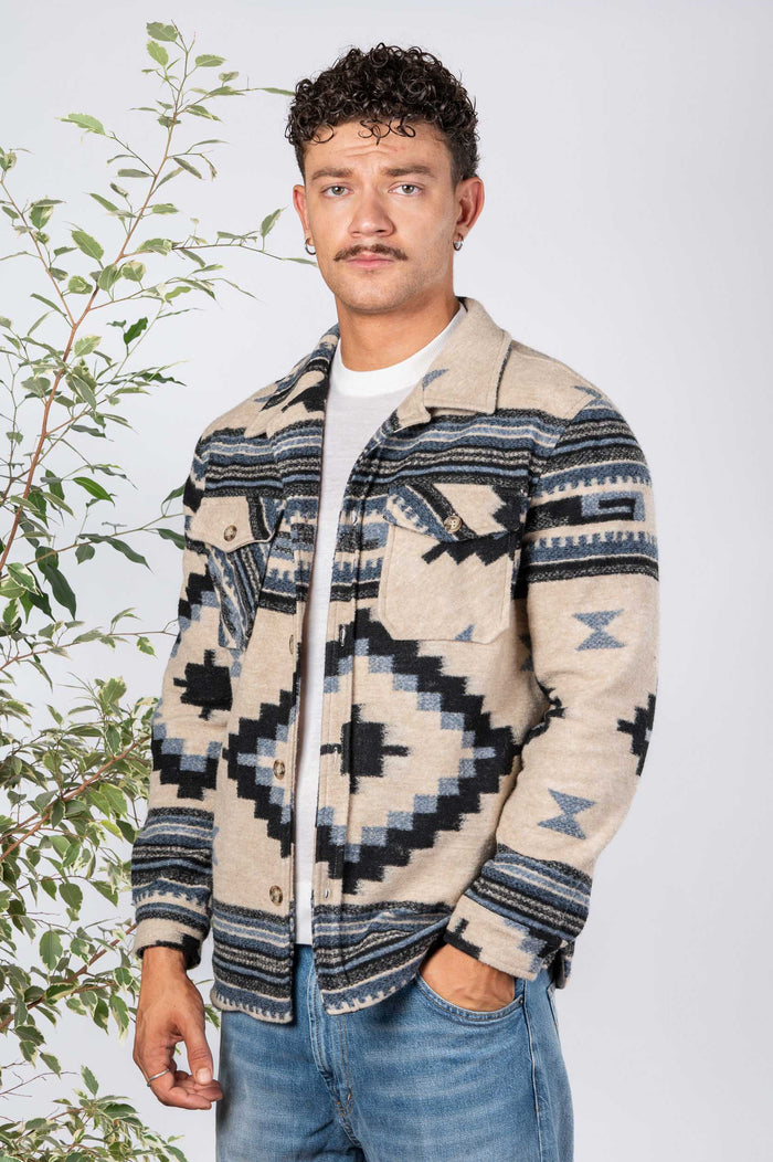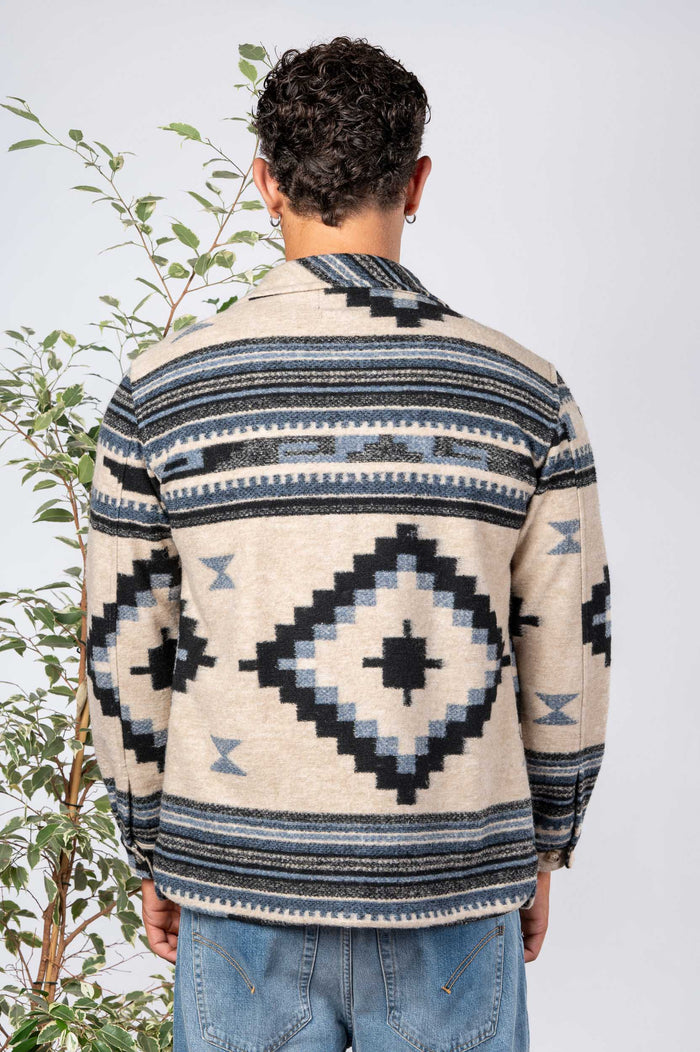 - Over Jacket fantasia in misto lana. Chiusura frontale con bottoni in contrasto. Tasche sul petto. Fondo stondato. Polsini chiusura con bottoni.