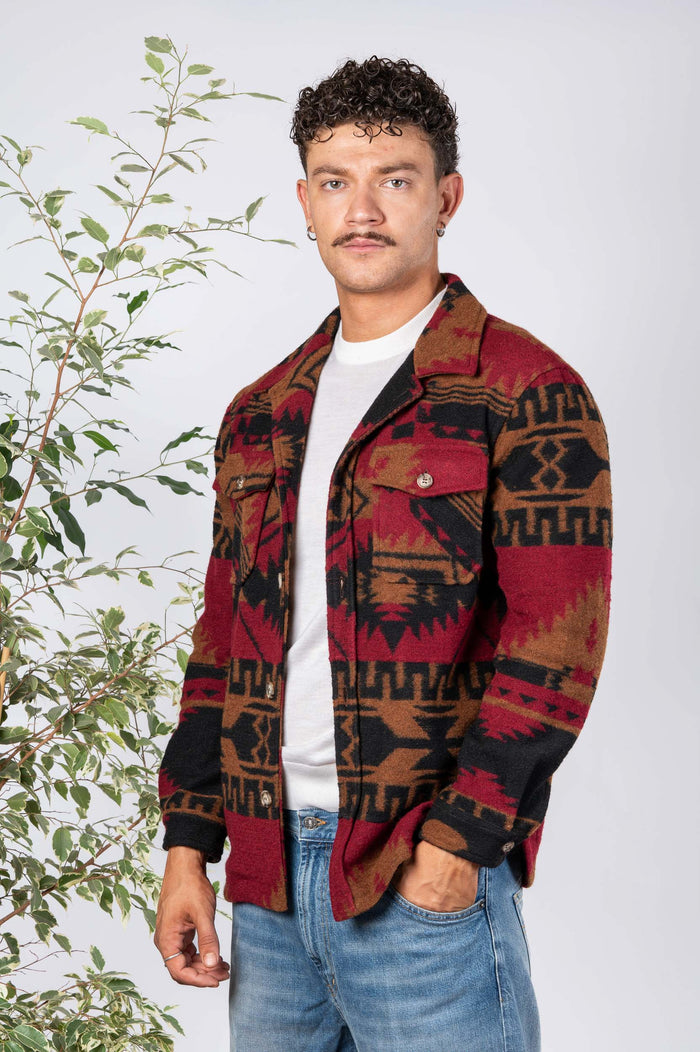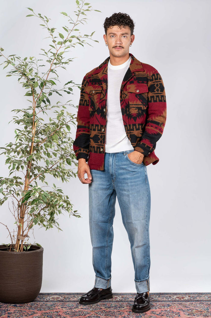 - Over Jacket fantasia in misto lana. Chiusura frontale con bottoni in contrasto. Tasche sul petto. Fondo stondato. Polsini chiusura con bottoni.