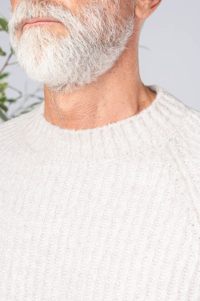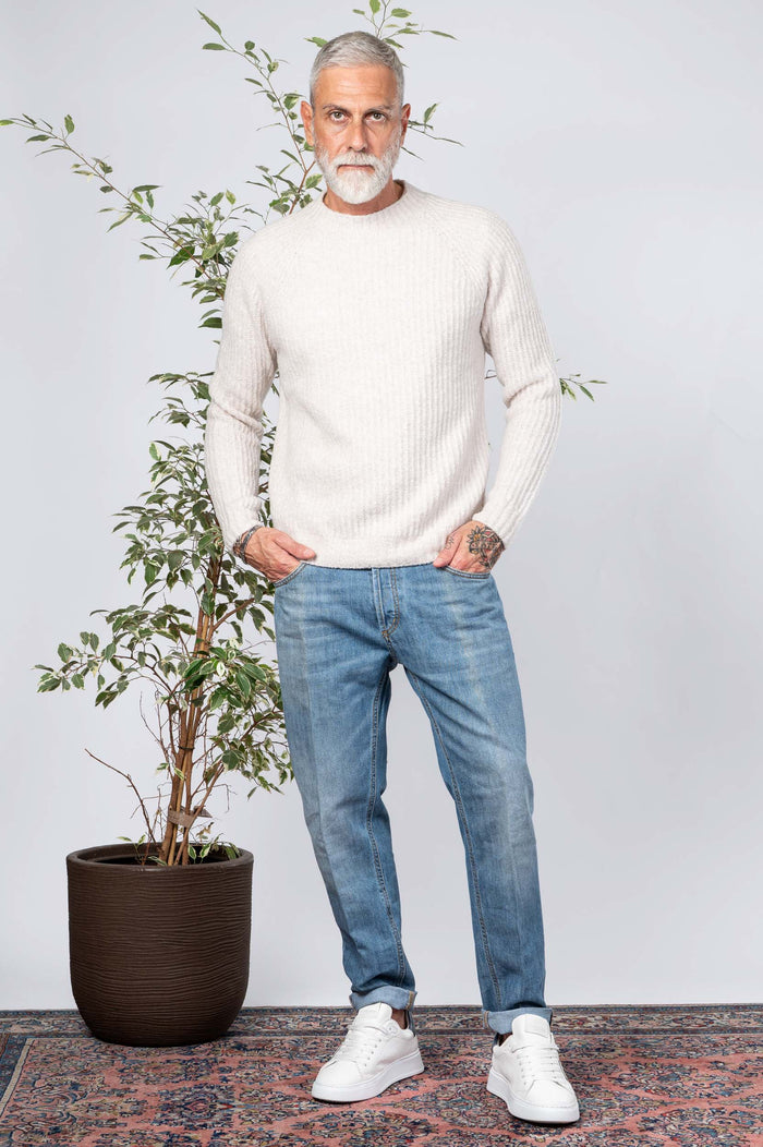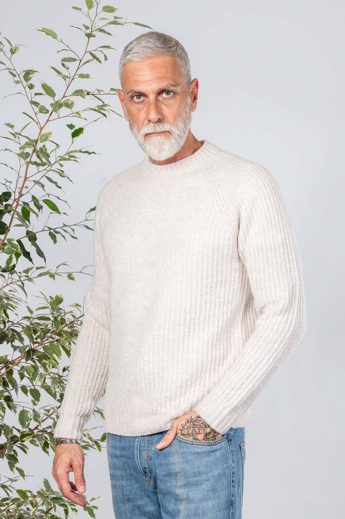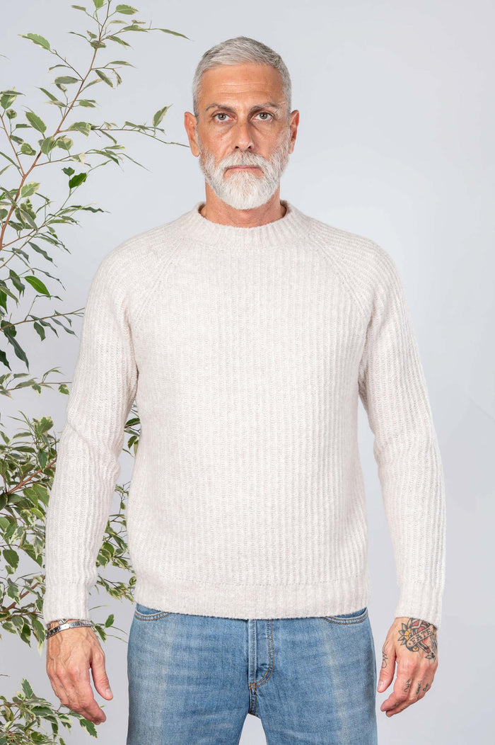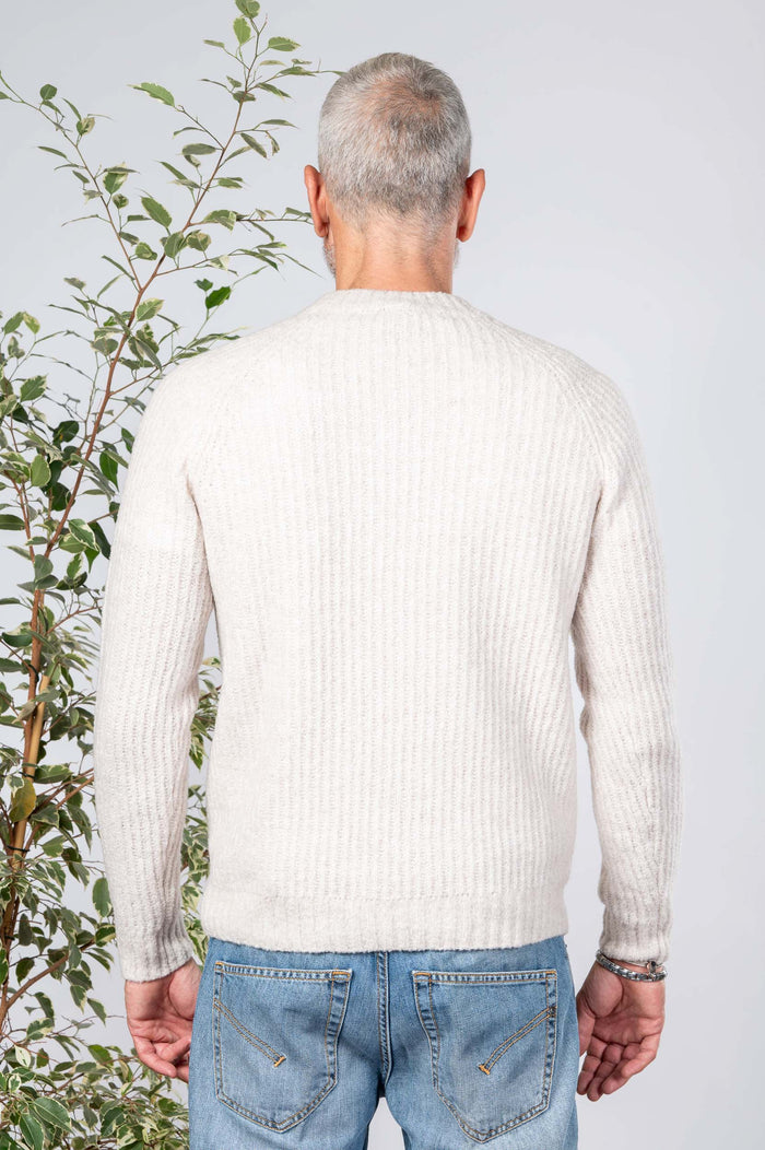 - Girocollo tinta unita in misto lana. Maglione canettaqto elasticizzato.