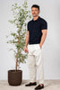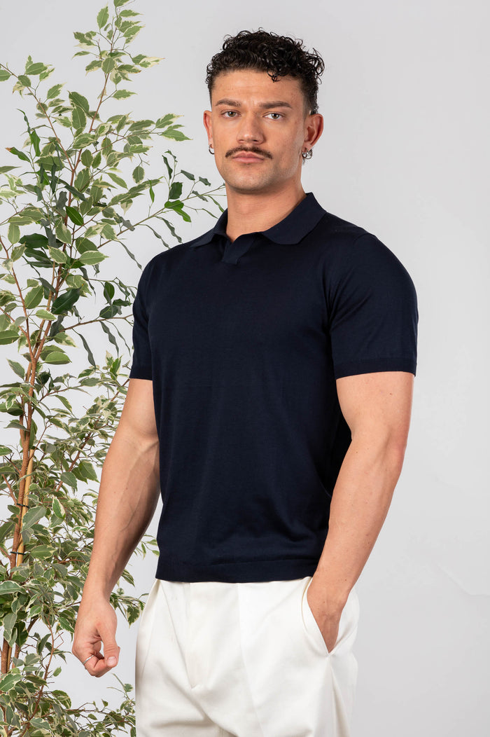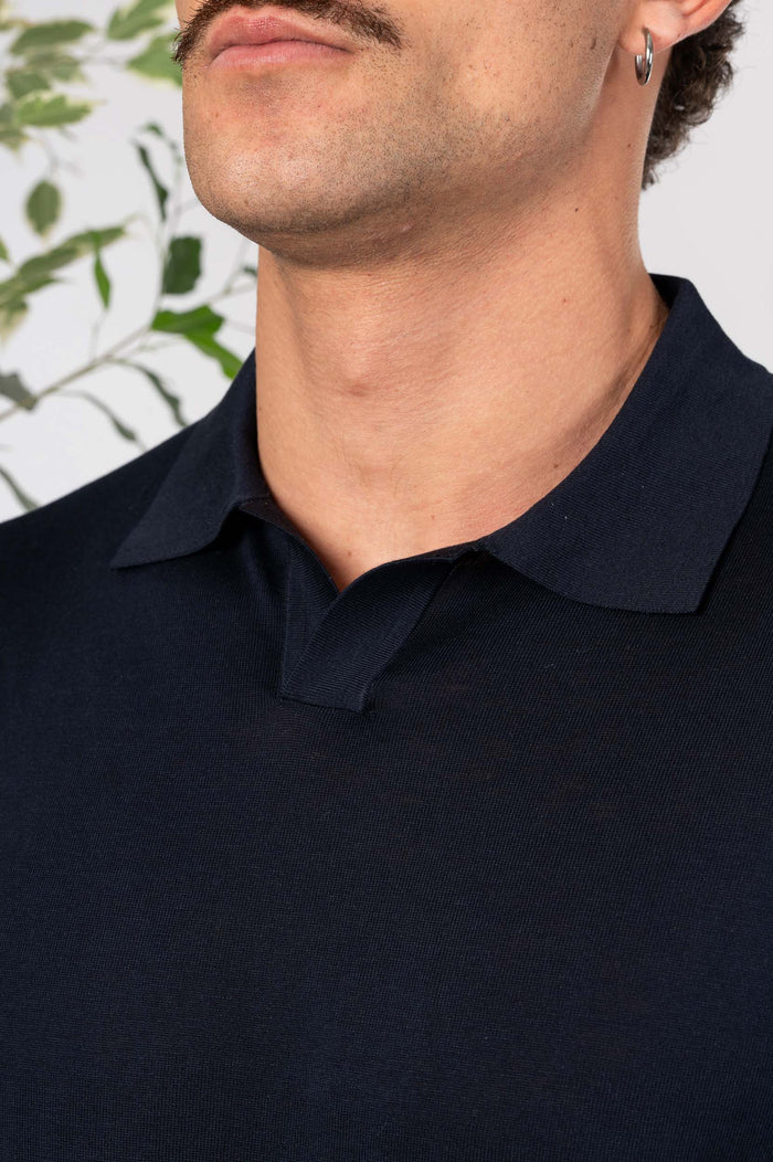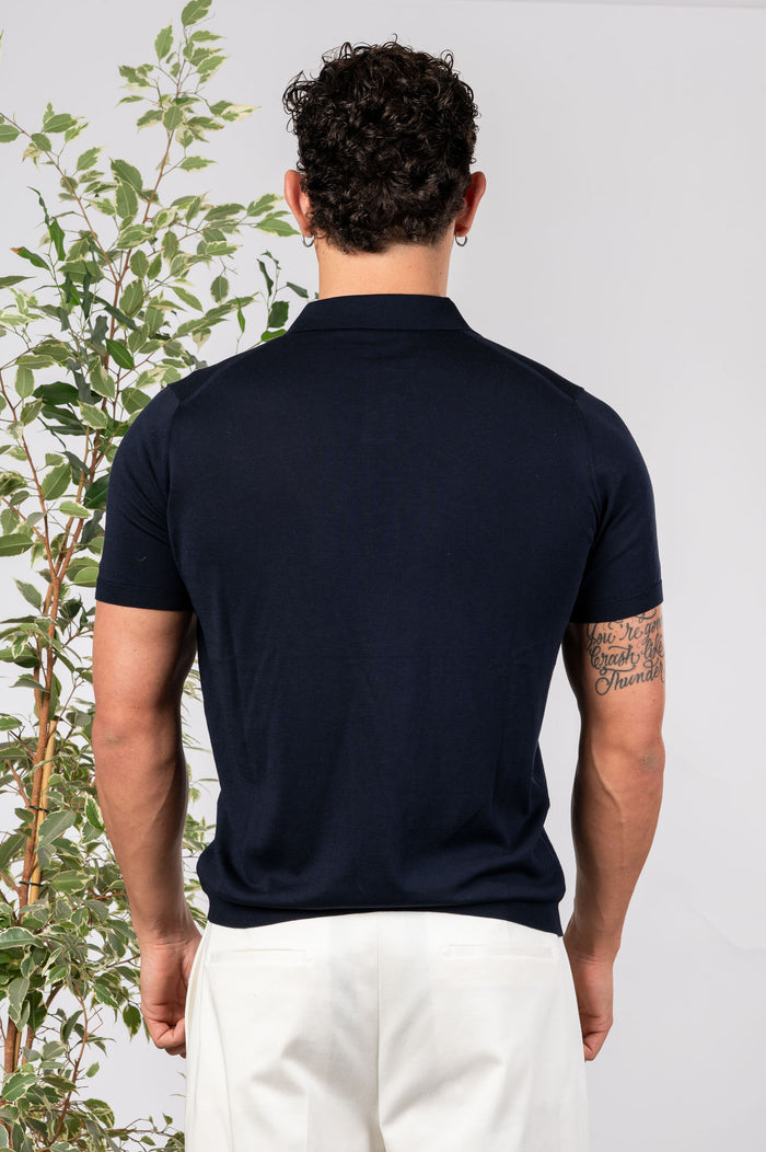 - Polo in seta e cotone tinta unita, maniche e fondo con bastonetto elasticizzato.