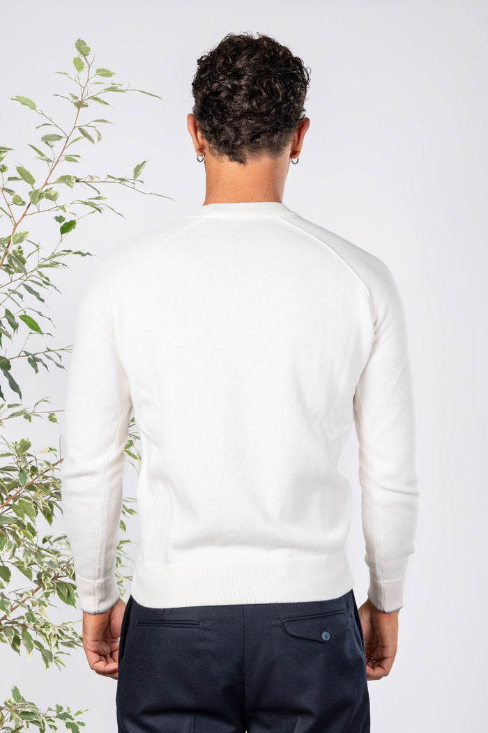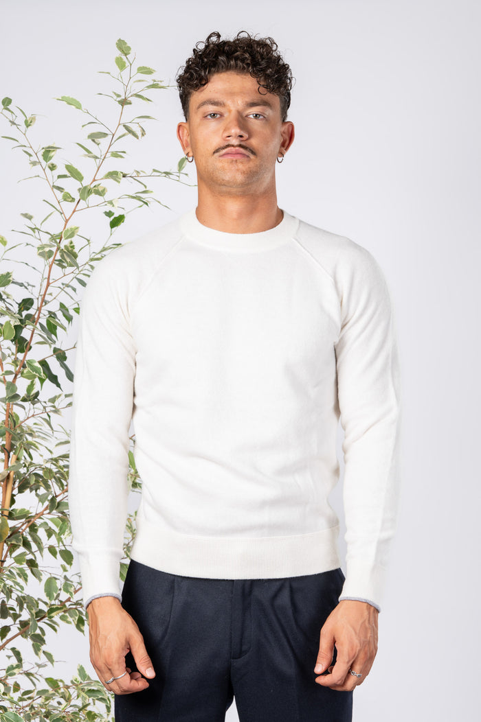 - Felpa girocollo tinta unita in lana. Fondo con bastonetto elasticizzato.