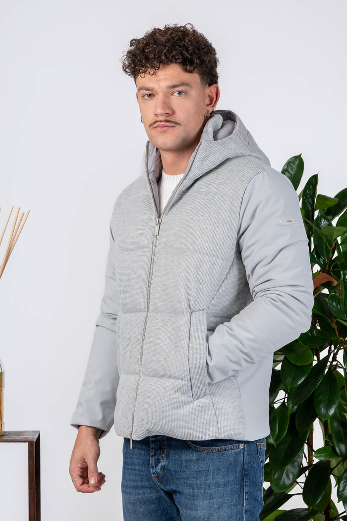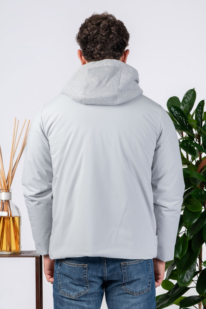 - Parka tinta unita con cappuccio in tessuto tecnico. Tasche a filo laterali. Chiusura a con zip in contrasto.