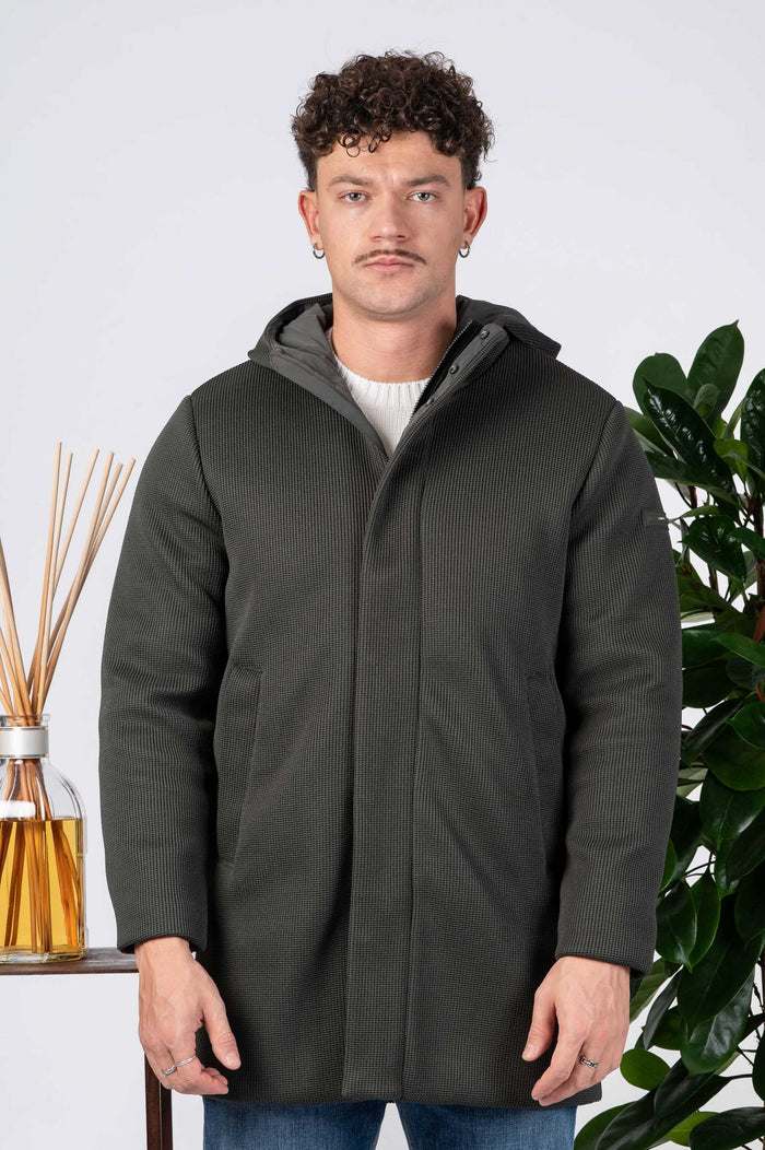 - Parka tinta unita in tessuto tecnico. Tasche a filo laterali. Chiusura con zip a scomparsa.