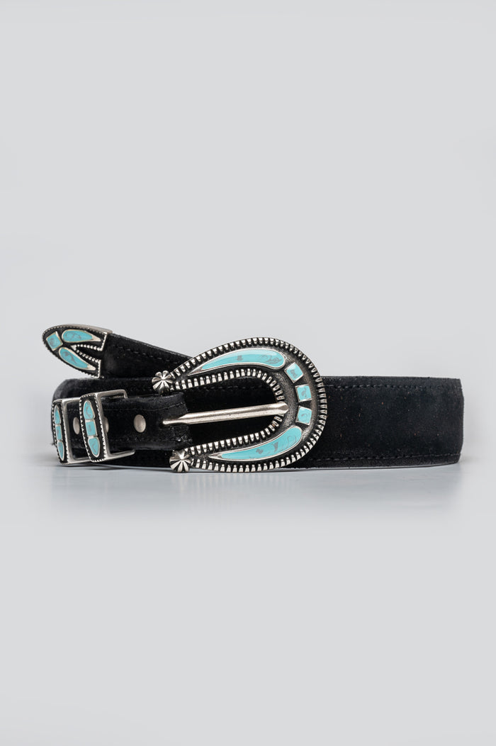 - Cintura in vera pelle effetto crosta vintage. Fibbia in metallo lavorata impreziosita da dettagli turchese con fori nella parte opposta. Ispirazione americana heritage. Cintura artigianale Made in italy.