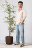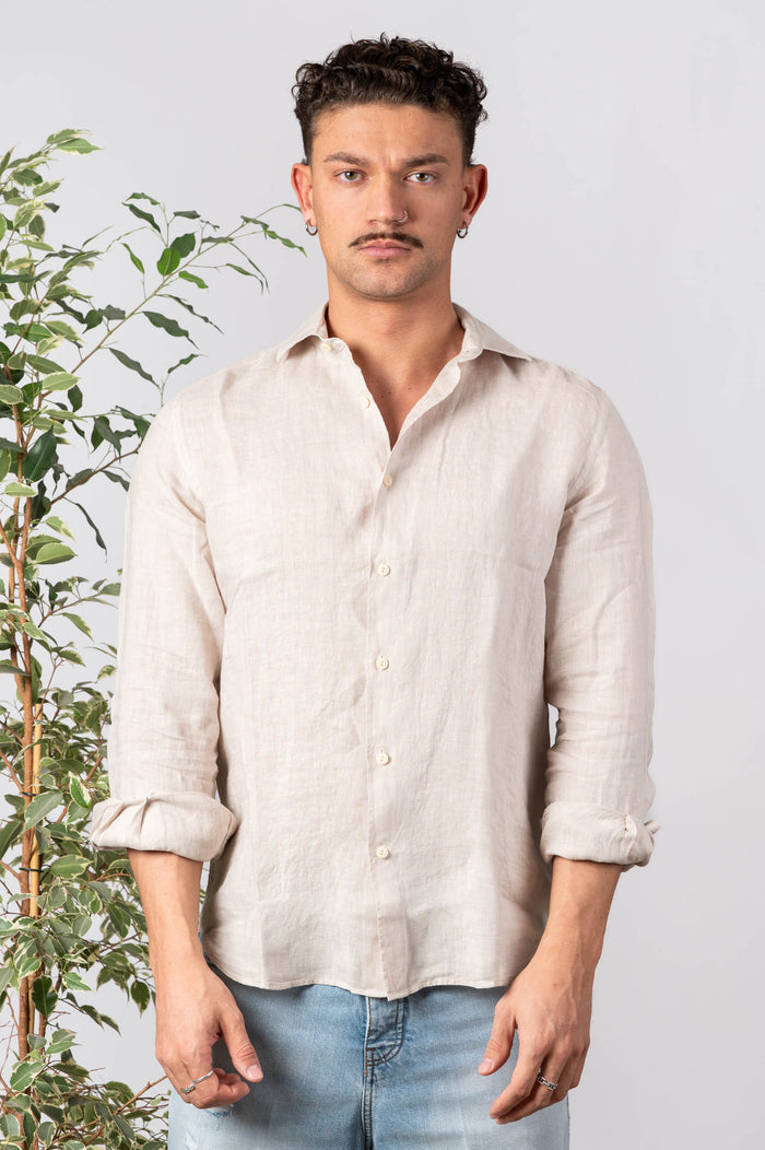 - Camicia tinta unita in lino. Chiusura frontale con bottoni. Polsini con bottoncino.