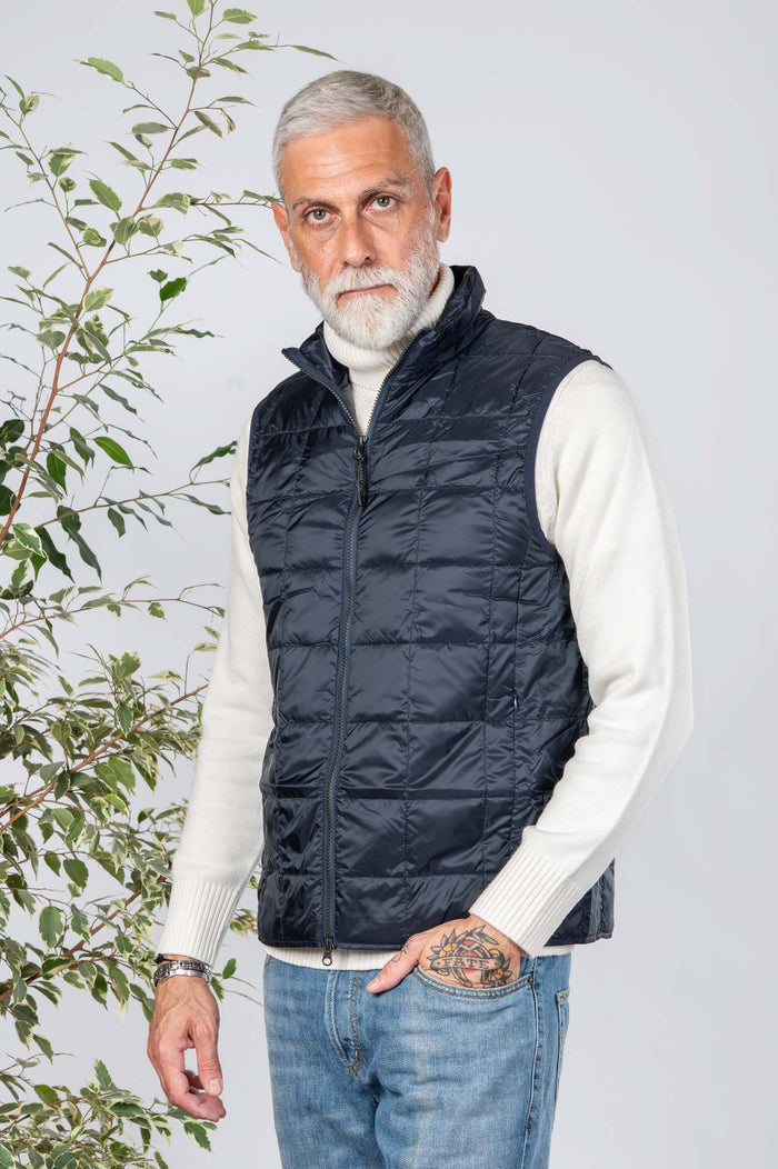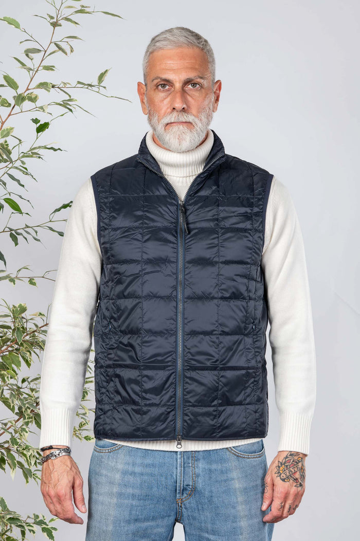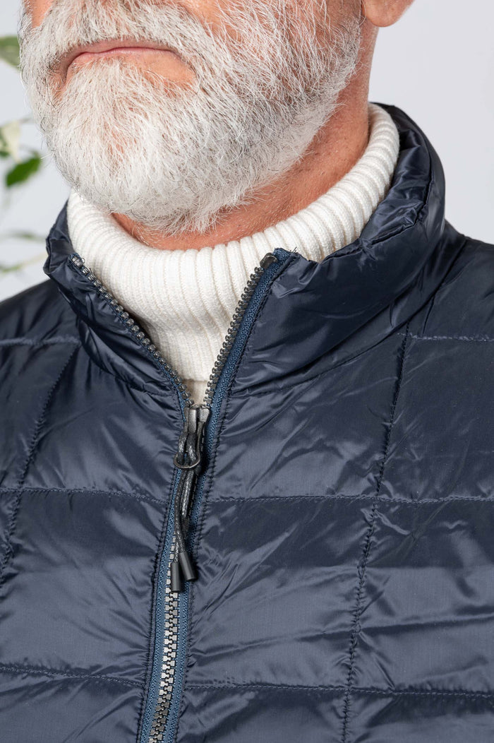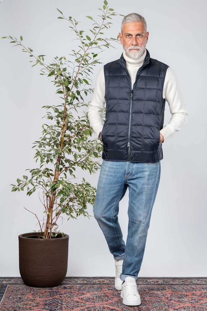 - Smanicato tinta unita. Imbottitura 100% vera piuma d'oca. Chiusura frontale con zip in contrasto. Fornita con custodia .