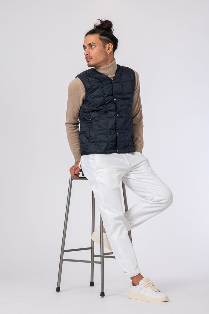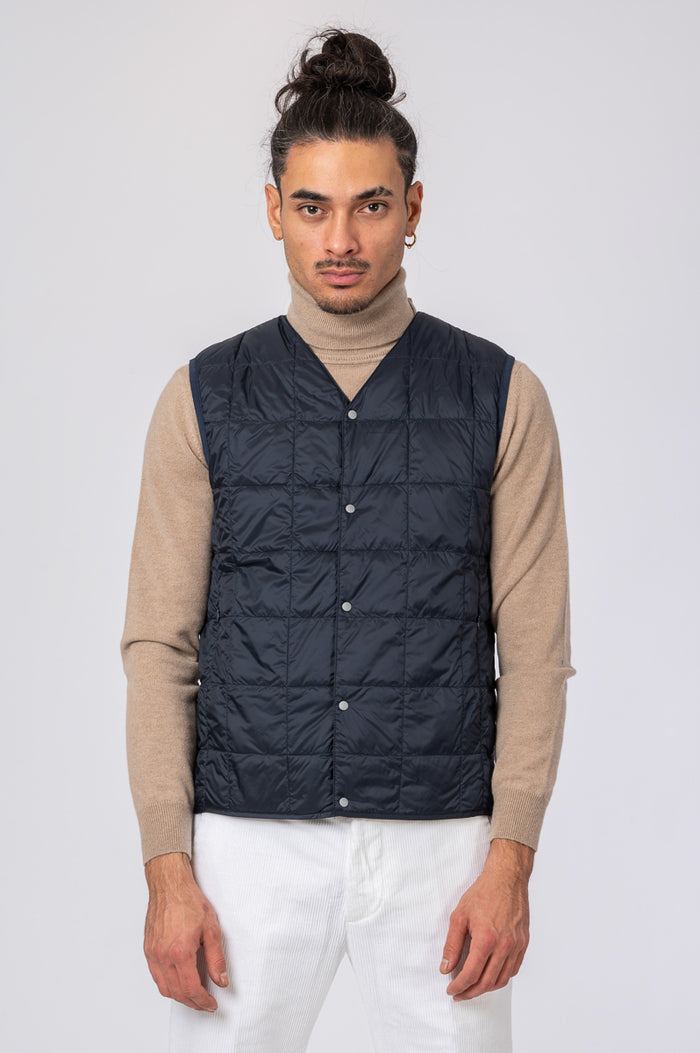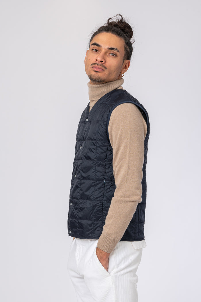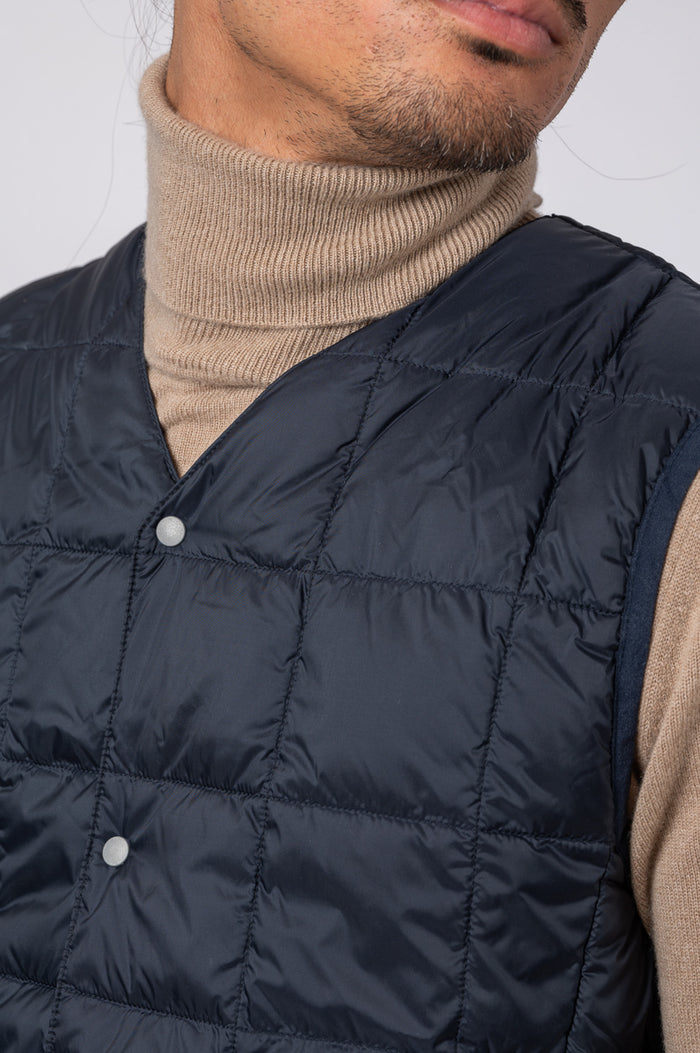 - Gilet tinta unita con scollo a V . Imbottitura 100% vera piuma d'oca. Chiusura frontale con bottoni automatici . Tasche laterali con chiusura a zip. Fornita con custodia .