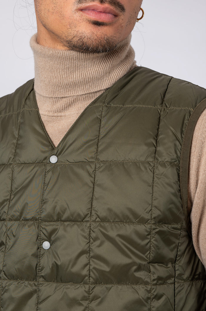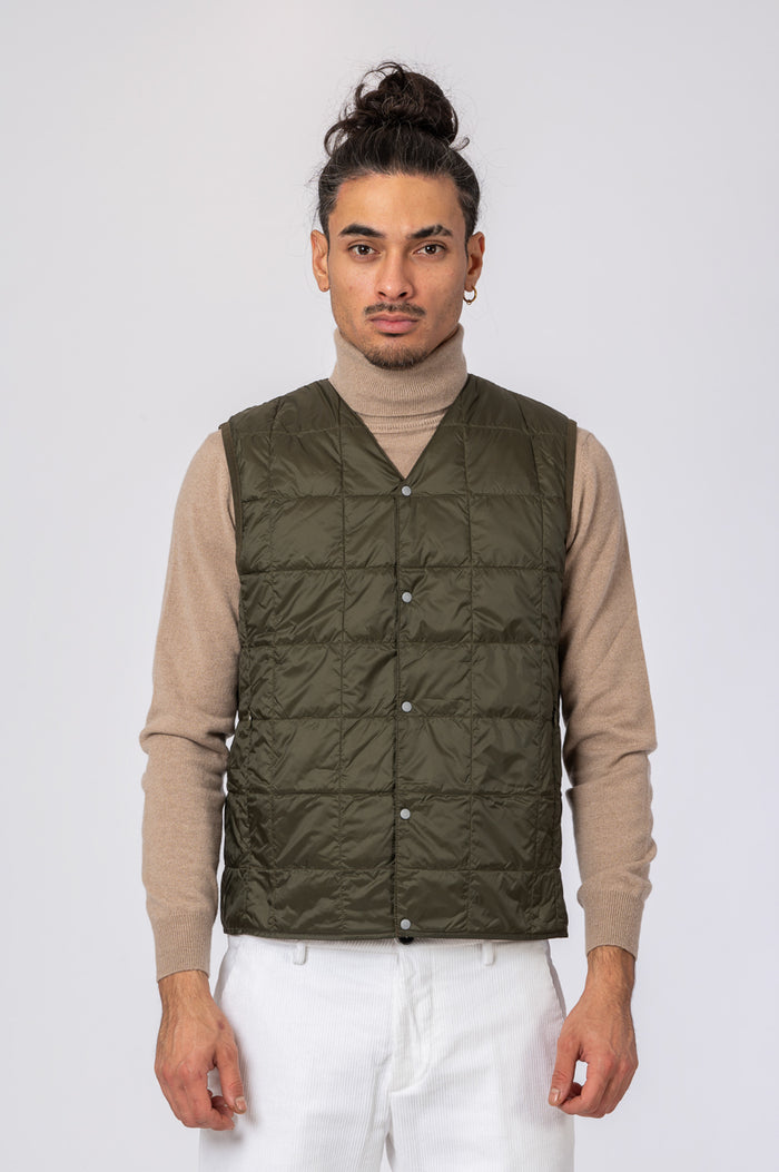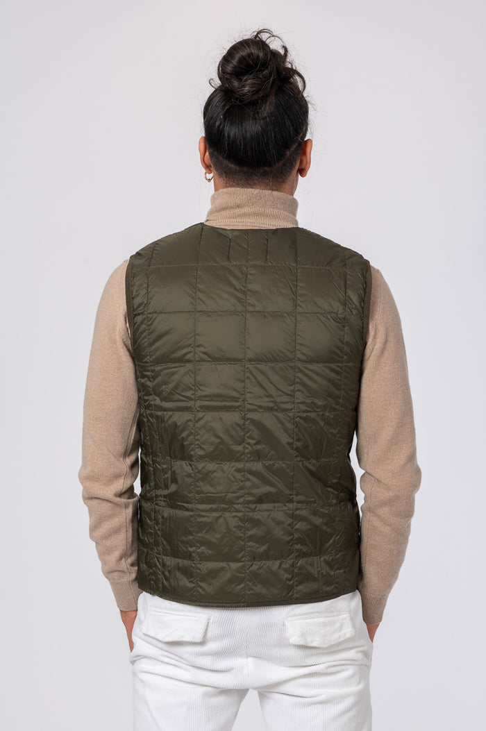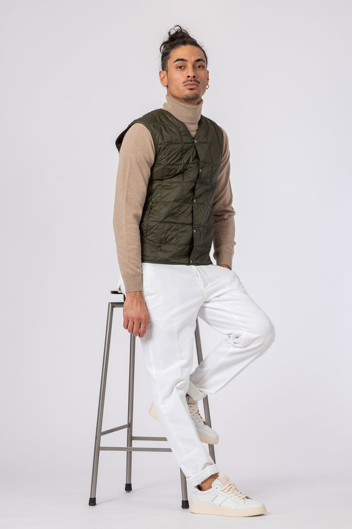 - Gilet tinta unita con scollo a V . Imbottitura 100% vera piuma d'oca. Chiusura frontale con bottoni automatici . Tasche laterali con chiusura a zip. Fornita con custodia .