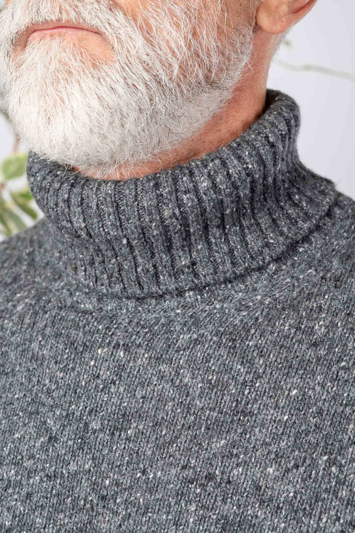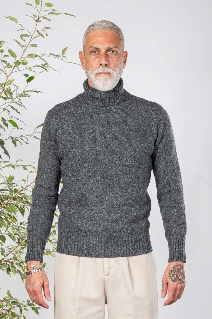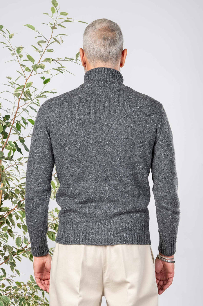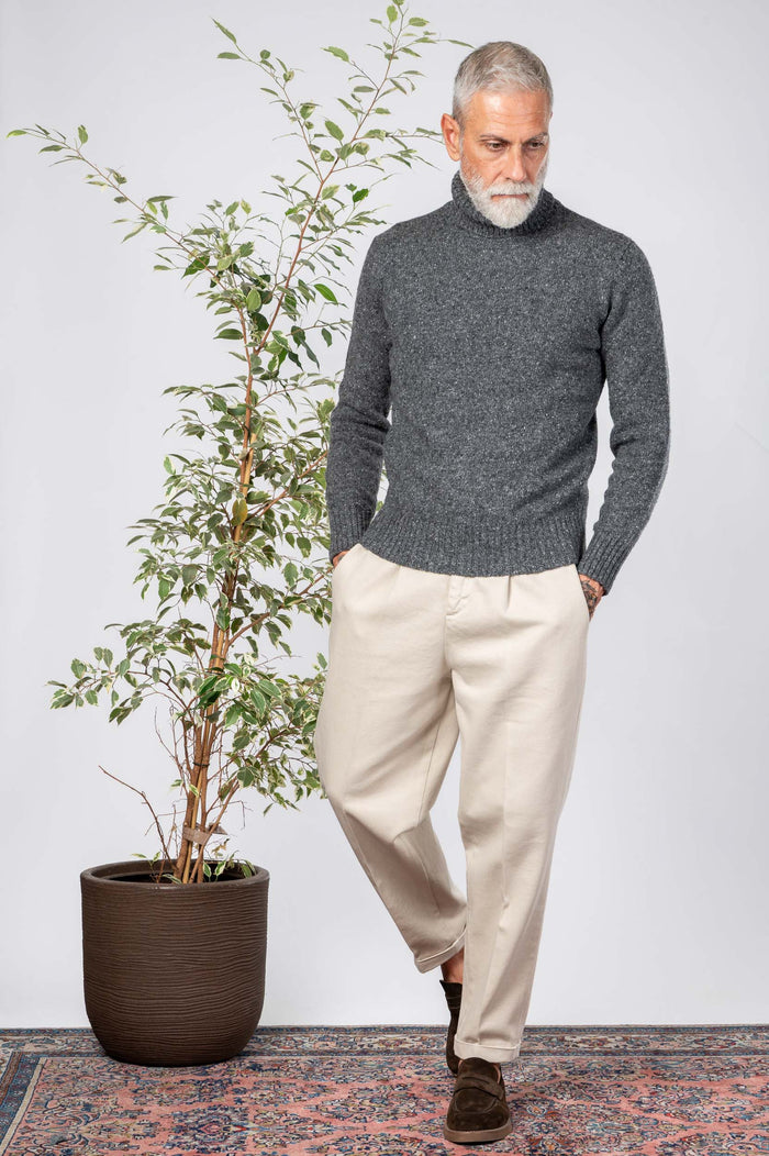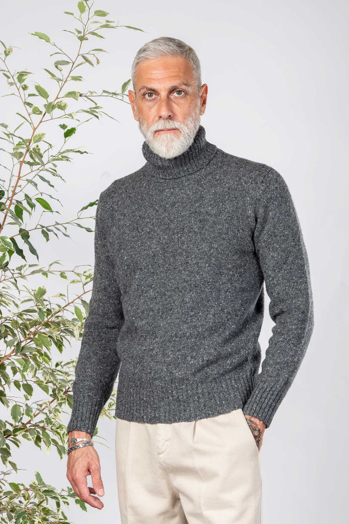 • Dolcevita in misto lana. Polsini e collo canettati. Fondo con bastonetto.
