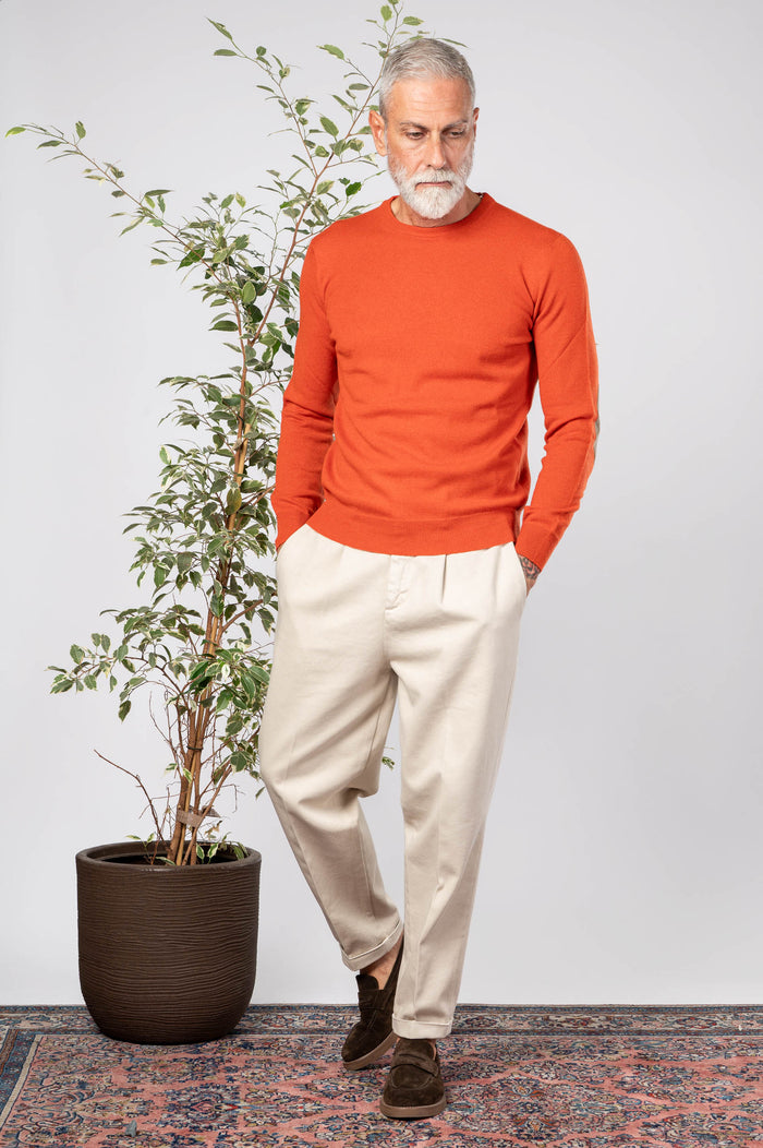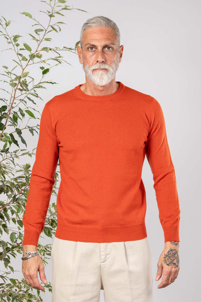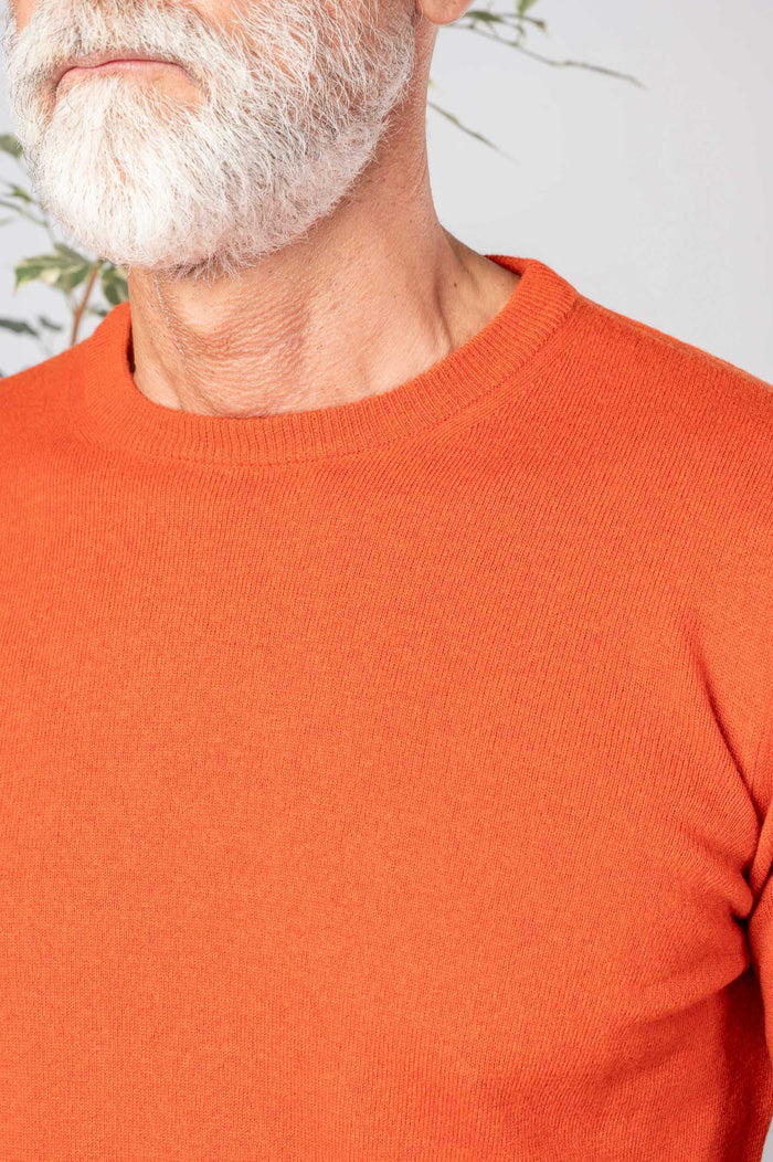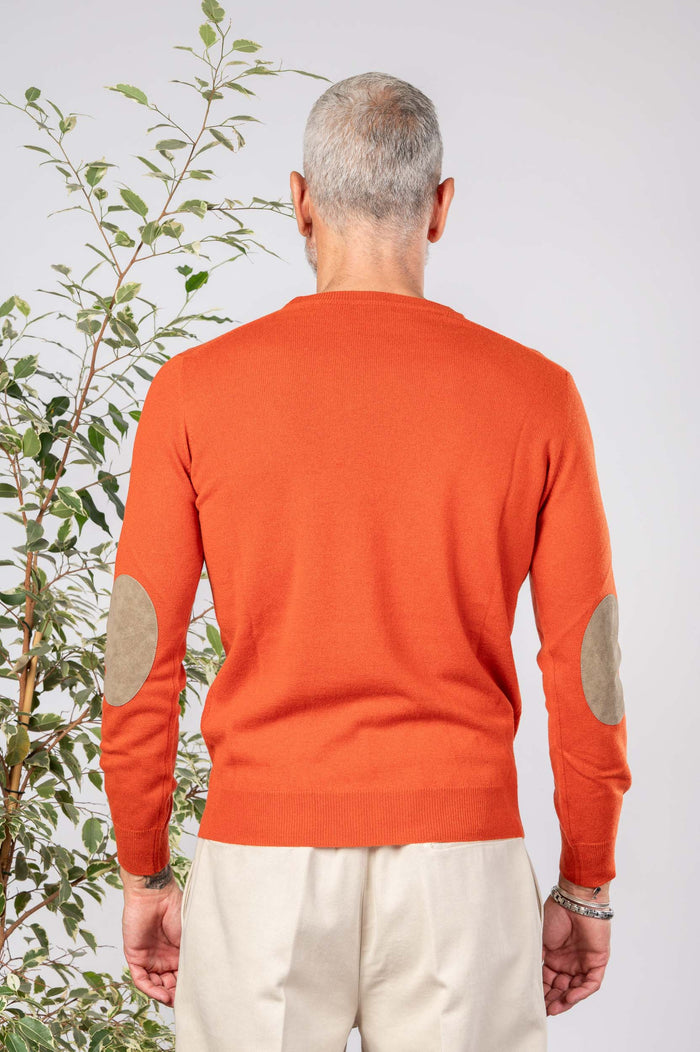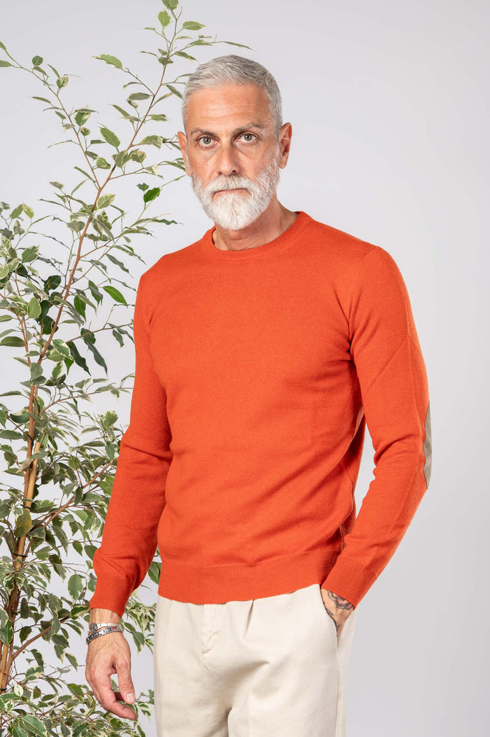 - Maglioncino girocollo in 100% lana. Collo e polsini canettati. Fondo con bastonetto. Manica con toppa in contrasto.