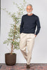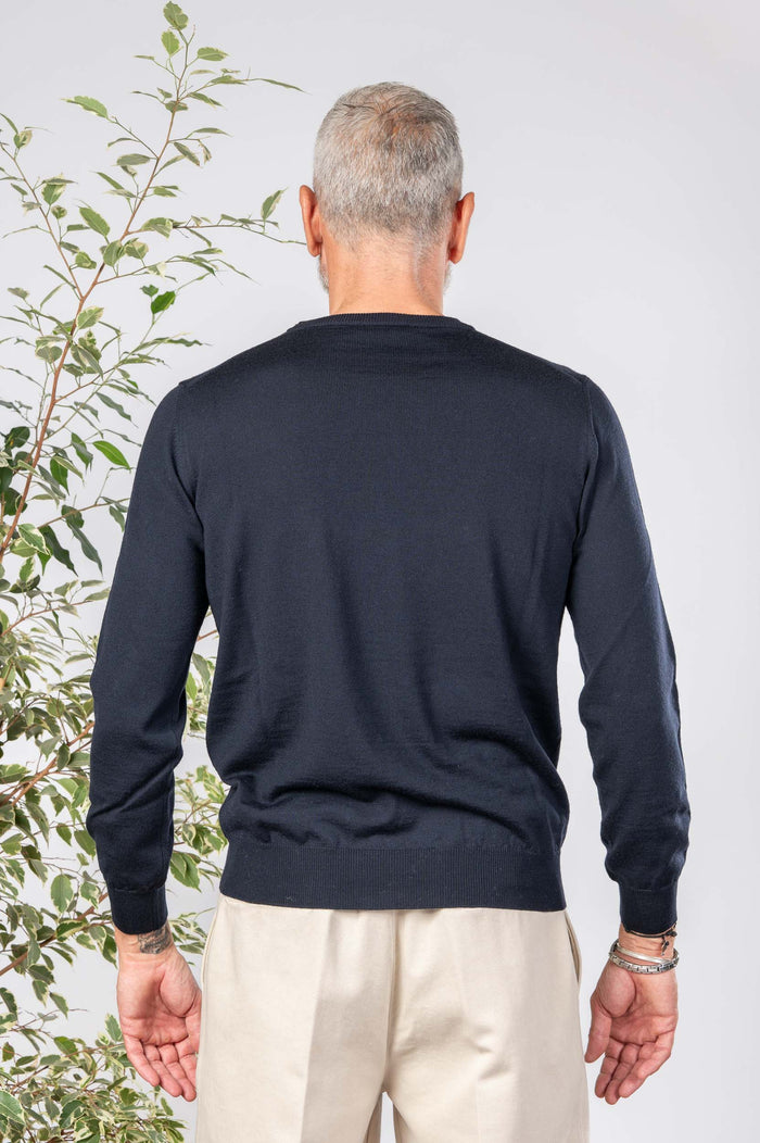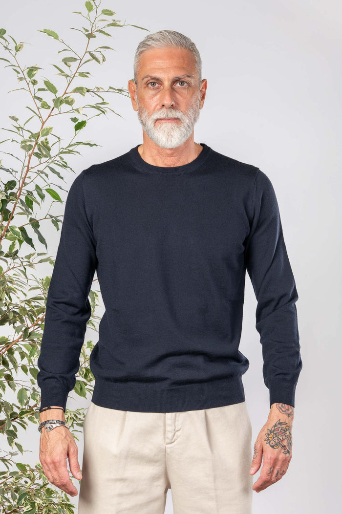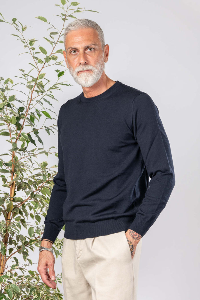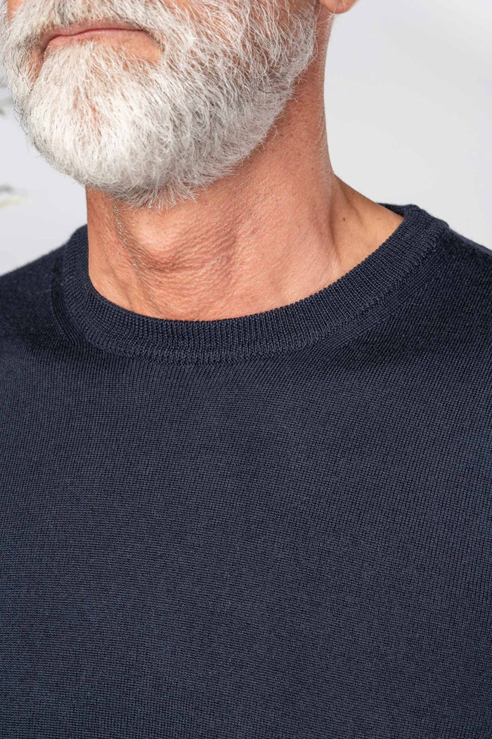 • Maglioncino girocollo in 100% lana. Collo e Polsini canettati. Fondo con bastonetto.