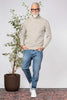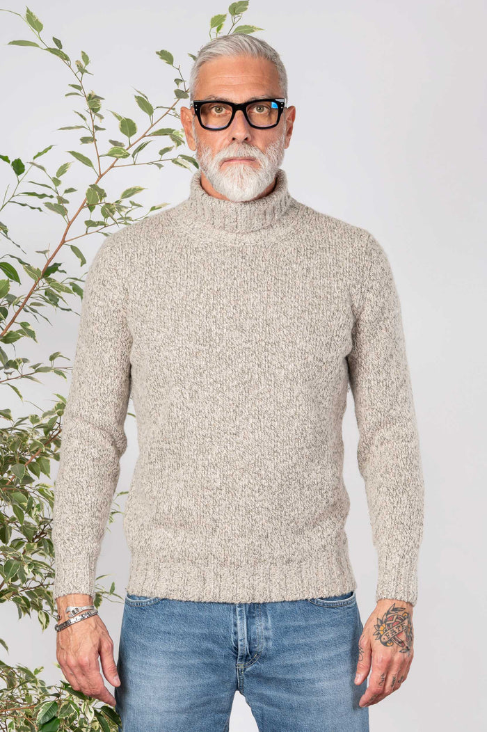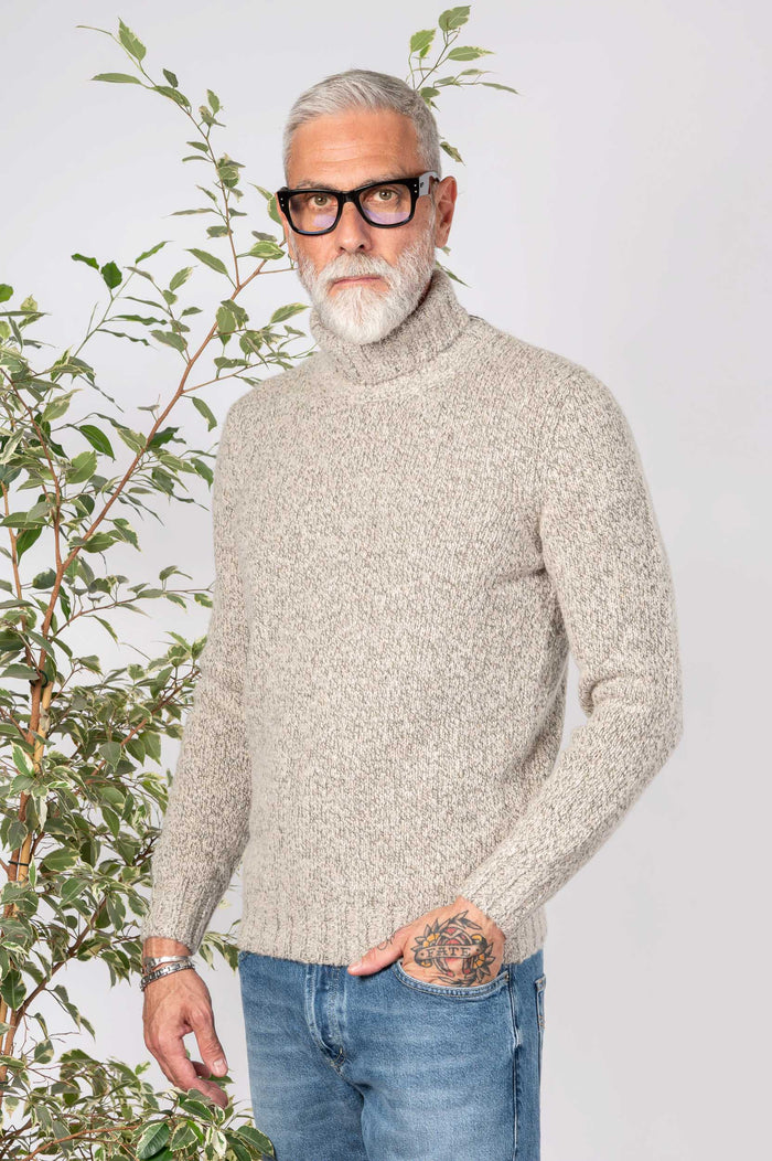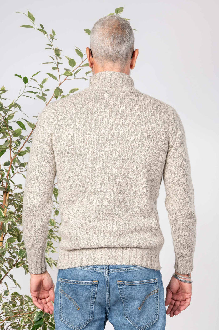 - Maglione dolcevita in misto lana. Collo e polsini canettati. Fondo con bastonetto.