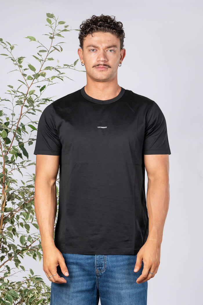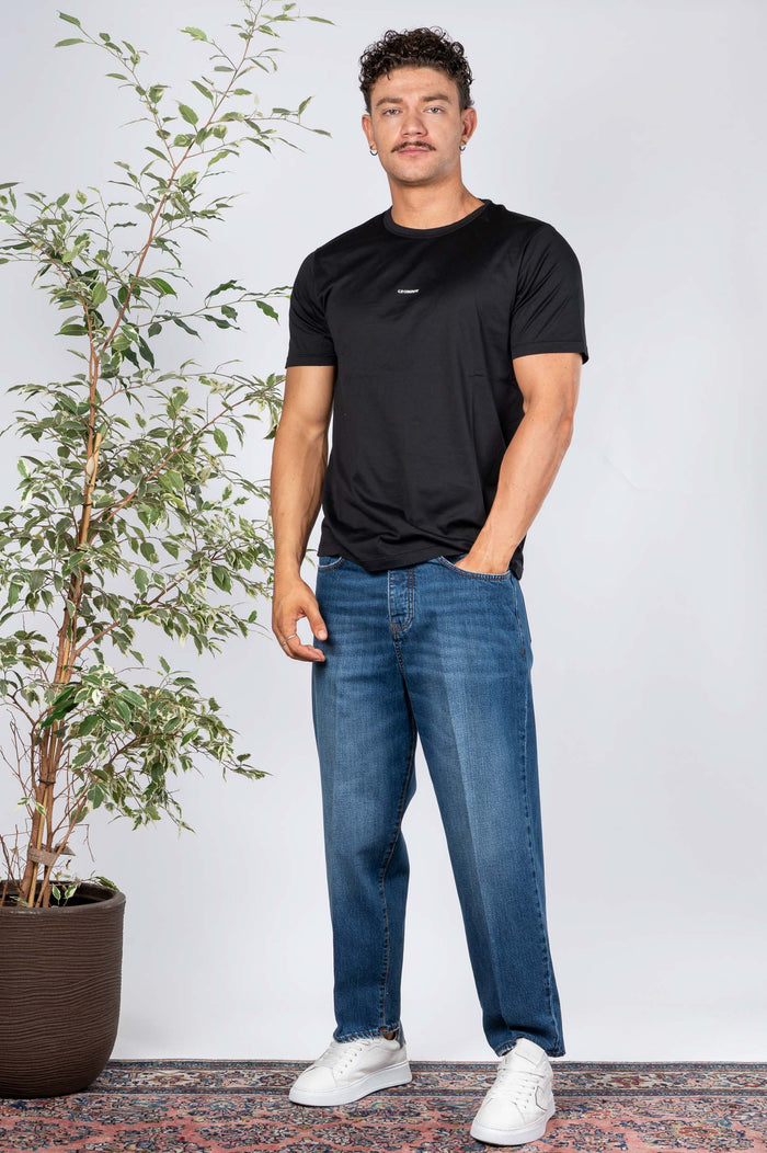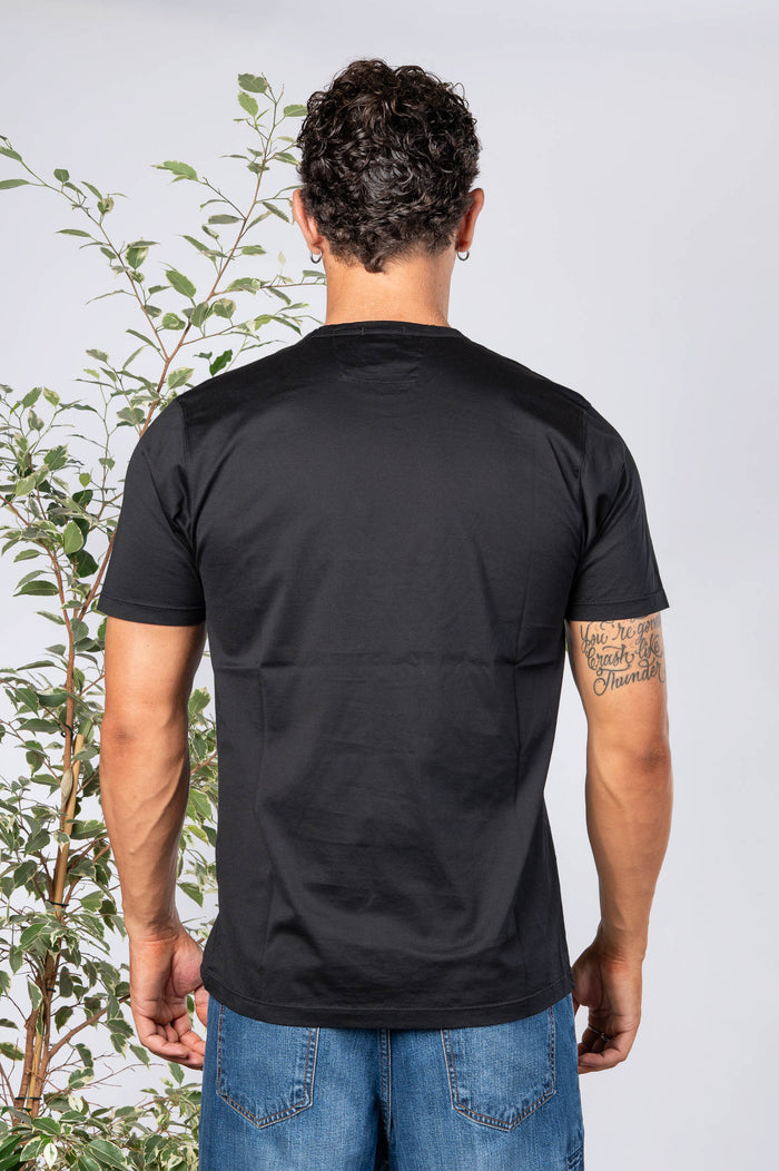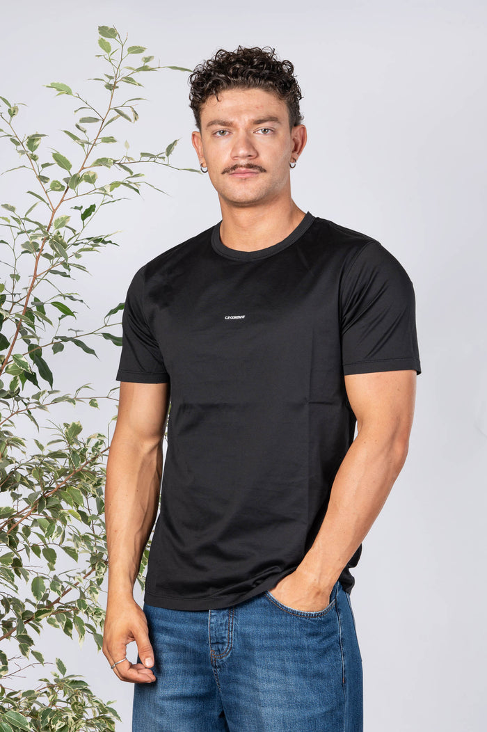 • T-Shirt girocollo tinta unita in cotone. Stampa logo centrale.