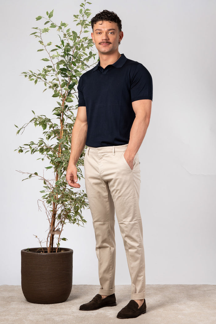 - Pantalone chino in cotone tinta unita. Vita regolare. Tasca america e piccola borchia logo sulla tasca posteriore. Vestibilità slim con fondo stretto.