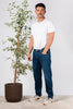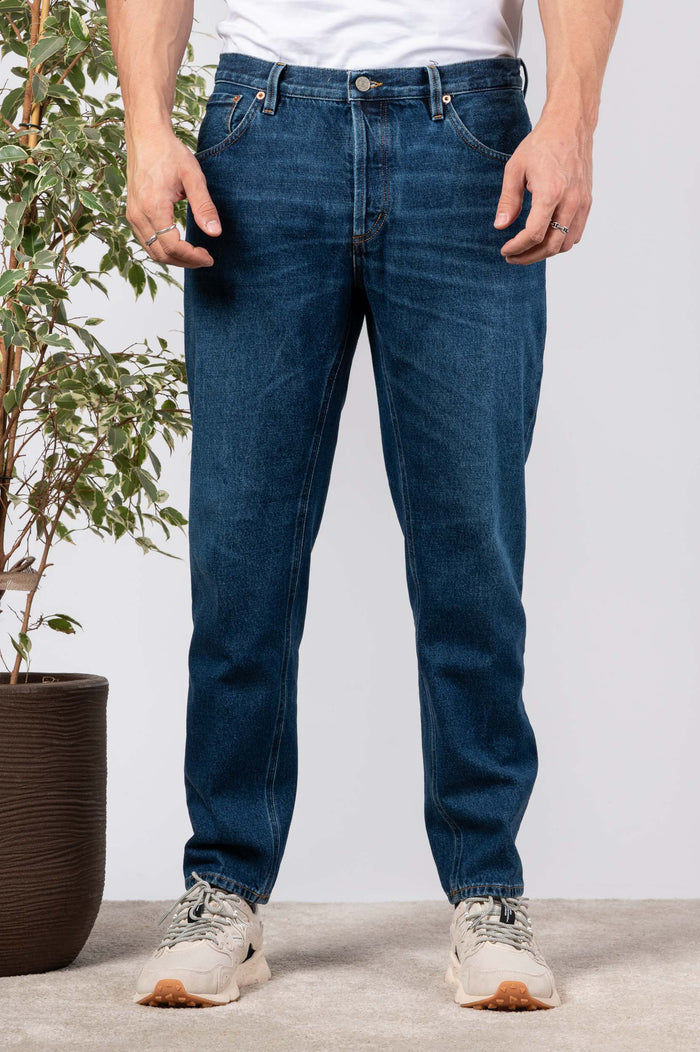 - Jeans in cotone elasticizzato tinta unita effetto lavato. Vita regolare. Cinque tasche e piccola borchia logo sulla tasca posteriore. Vestibilità morbida con fondo stretto.