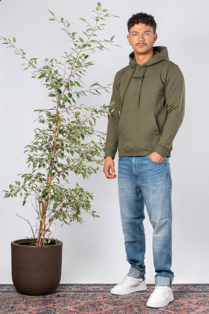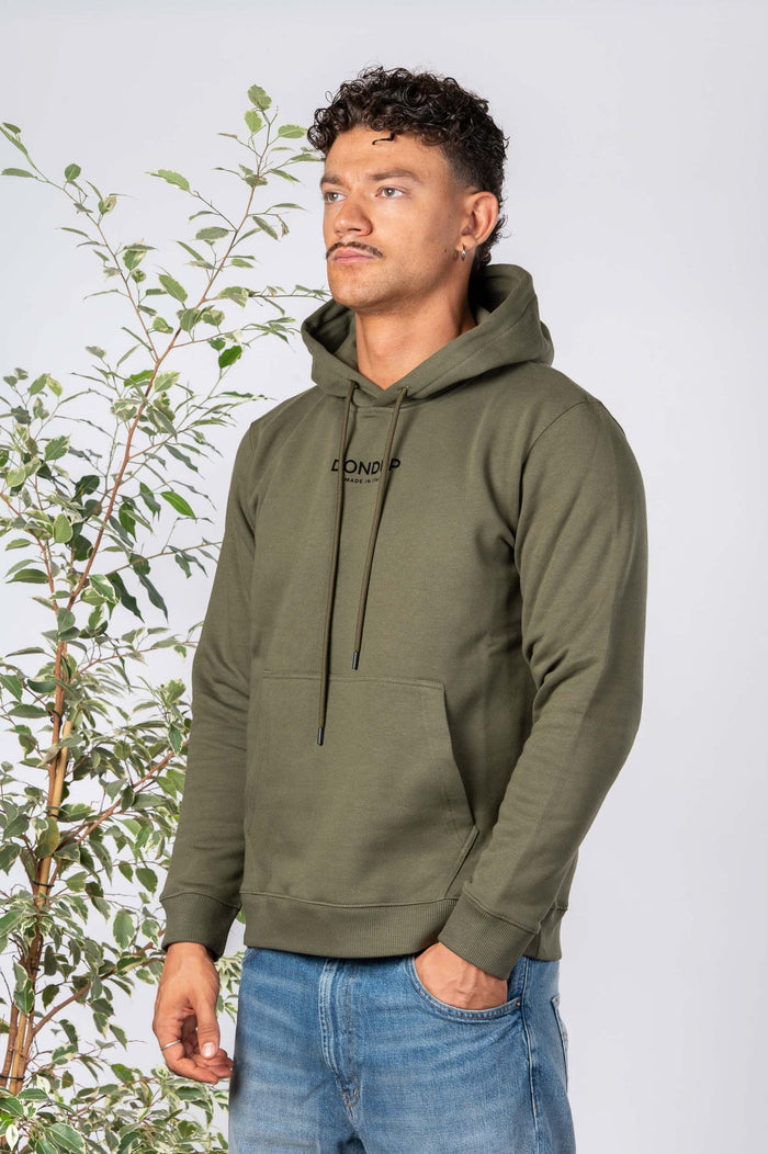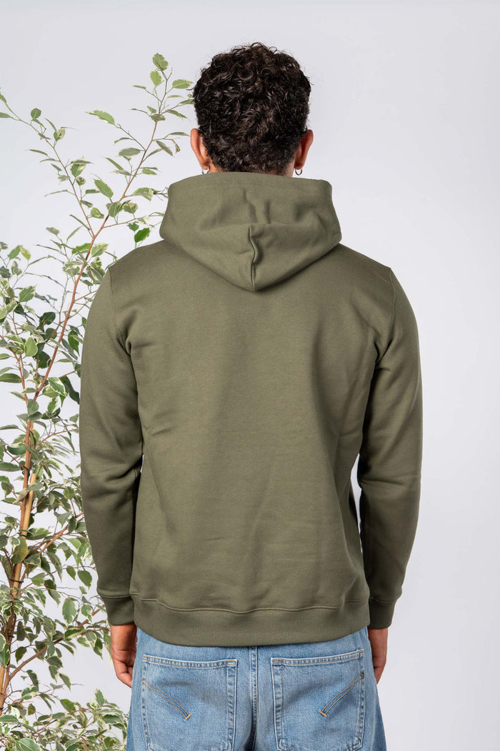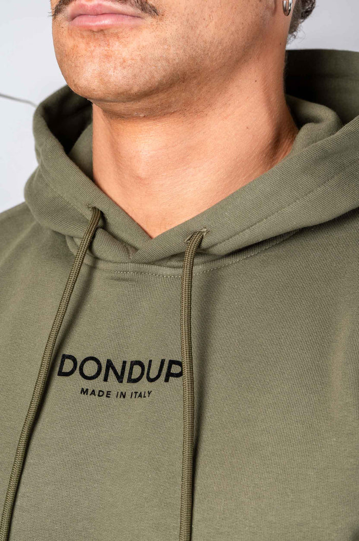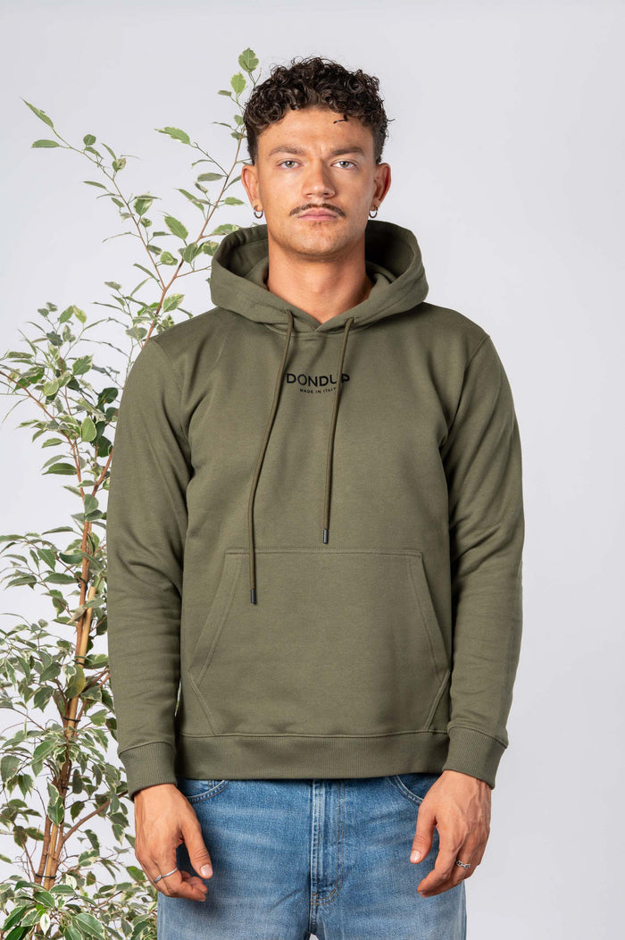 - Felpa cappuccio tinta unita in cotone. Girocollo e polsini canettati. Fondo bastonetto. Stampa logo sul petto.
