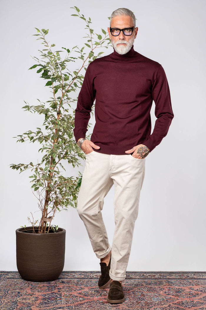 - Dolcevita manica lunga 100% Lana merino tinta unita. Collo,Polsini e fondo a bastonetto.