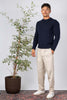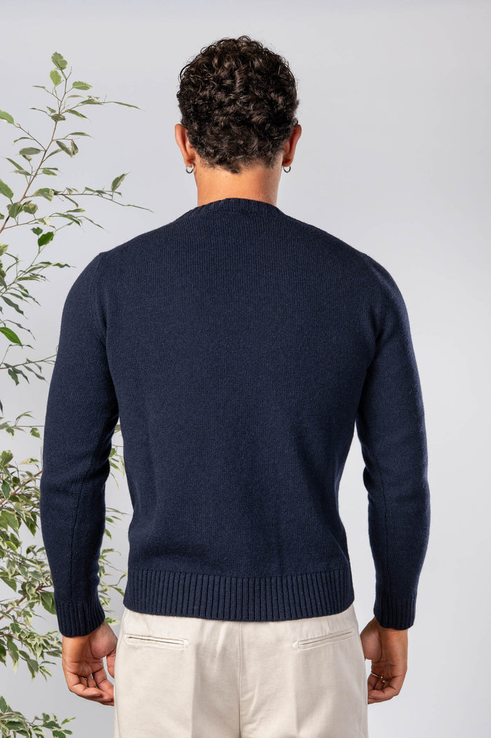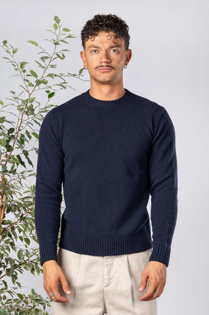 - Girocollo tinta unita in lana. Collo elasticizzato. Polsini e fondo a bastonetto.