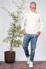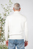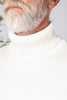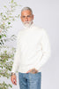 • Maglione dolcevita in 50% lana e 50% Cotone. Collo e polsini canettati. Fondo con bastonetto.