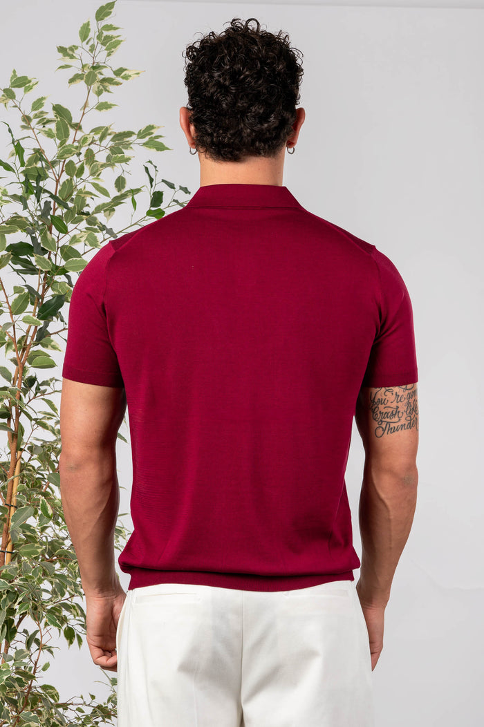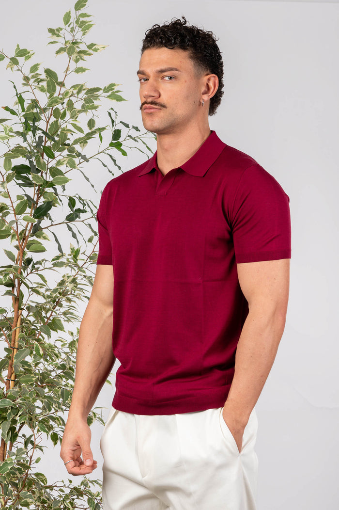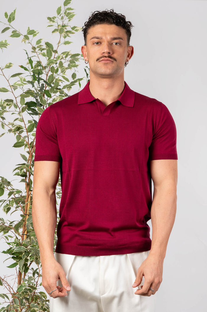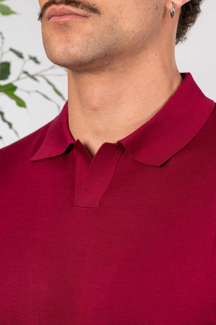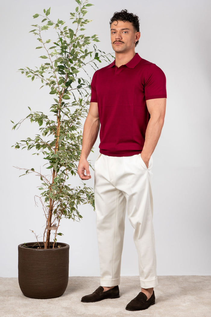 - Polo in seta e cotone tinta unita, maniche e fondo con bastonetto elasticizzato.