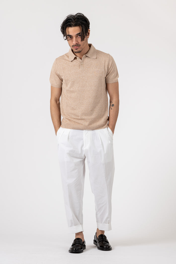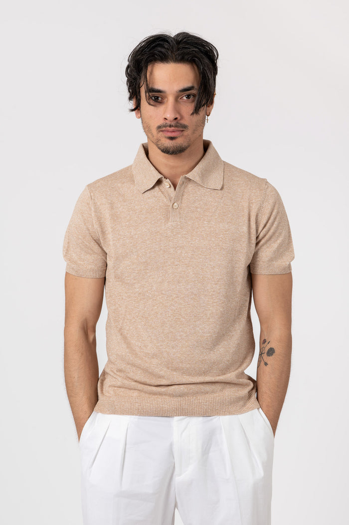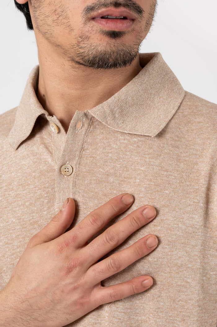 - Polo melange in cotone e lino elasticizzato. Vestibilità regular. Giro manica e fondo con bastonetto. Made in Italy.