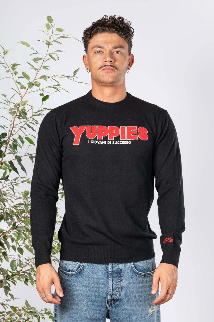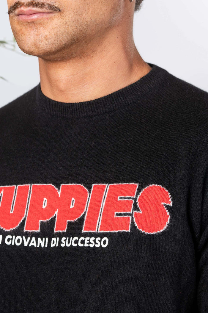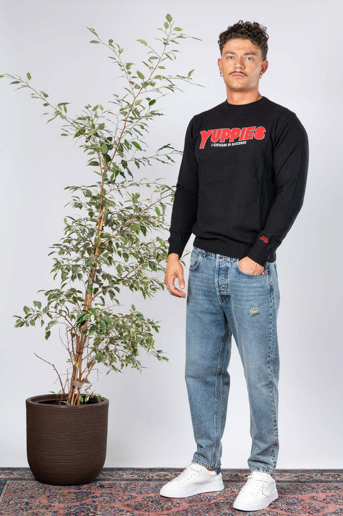 - Maglia fantasia in misto cachemire. Fondo e polsini elasticizzati. Logo sulla manica.