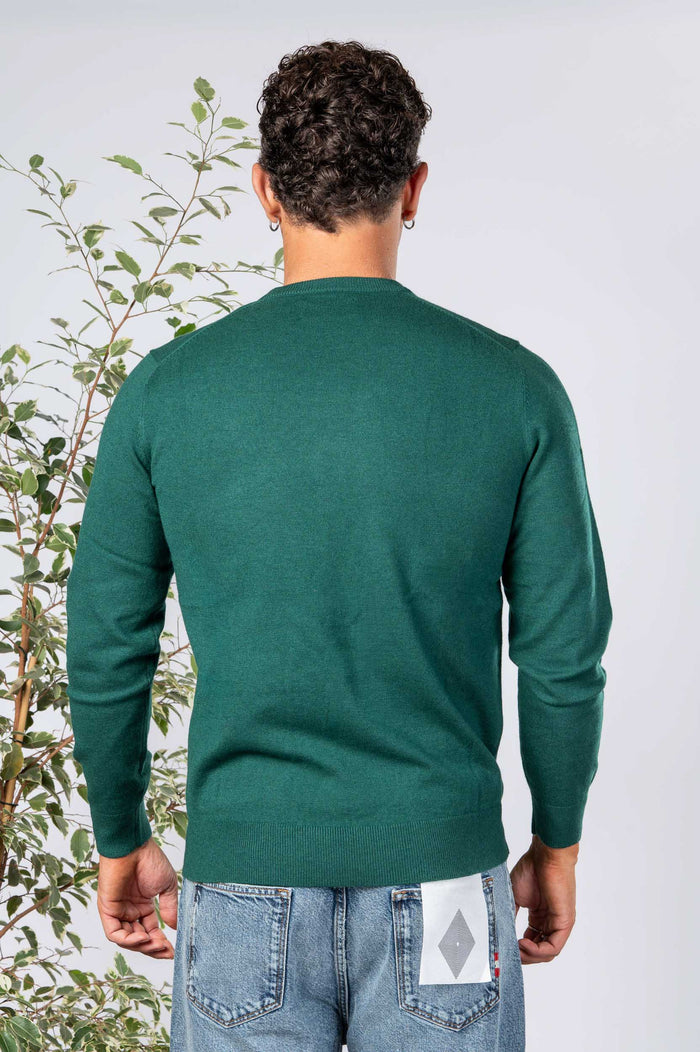 • Maglia fantasia in misto cachemire. Fondo e polsini elasticizzati. Logo sulla manica.