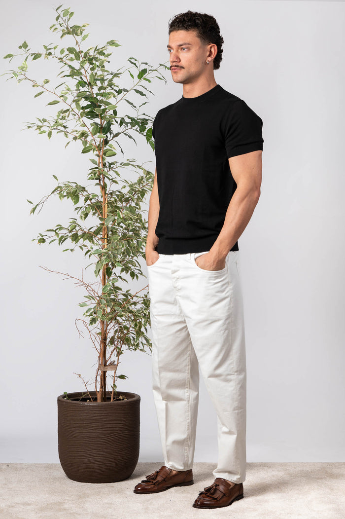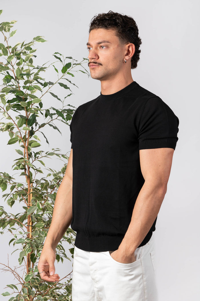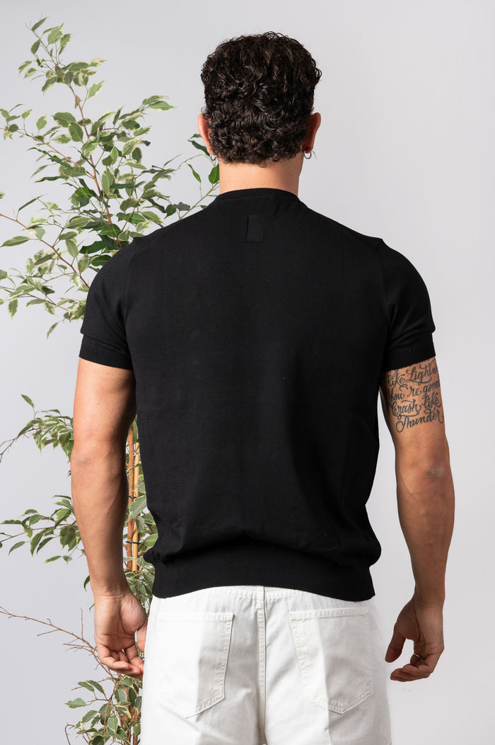 - Polo tinta unita in crepe di cotone. Vestibilità regular.
