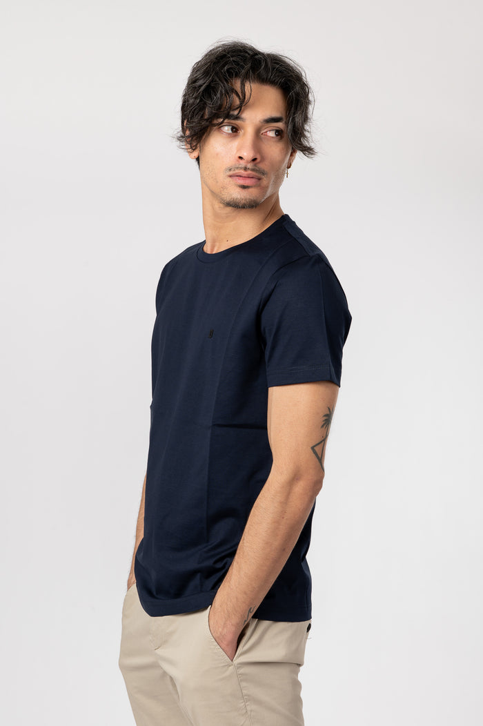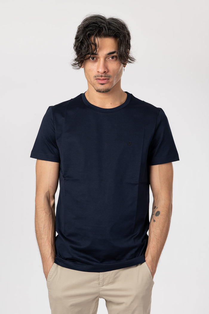 - T-Shirt tinta unita in cotone. Girocollo elasticizzato. Mezze maniche. Logo frontale ricamato in contrasto.