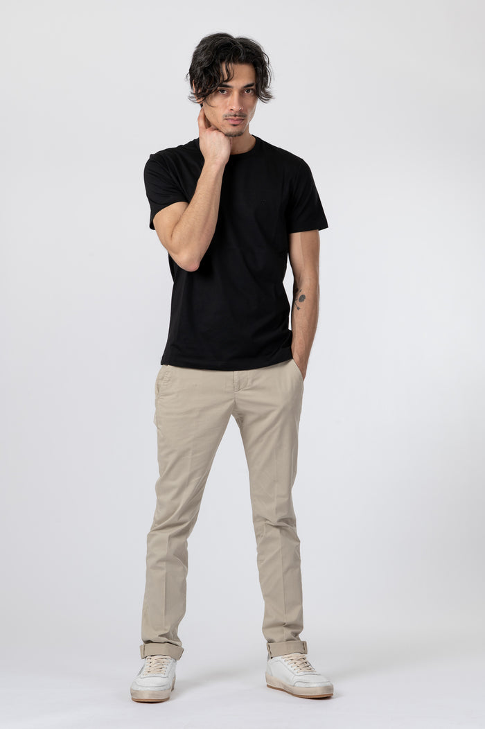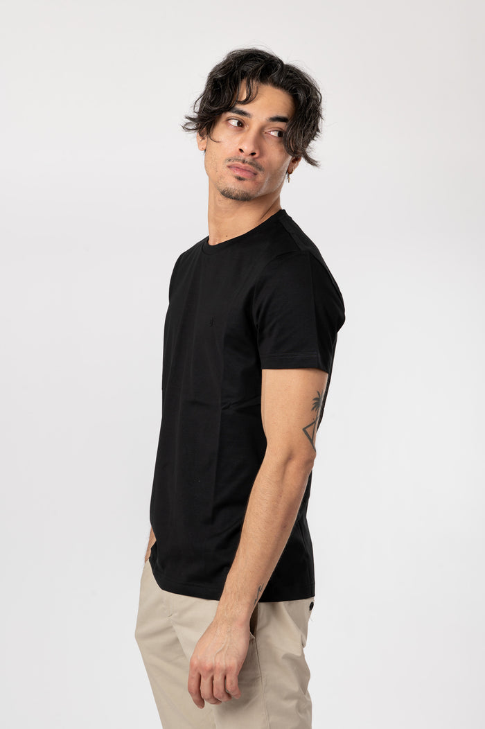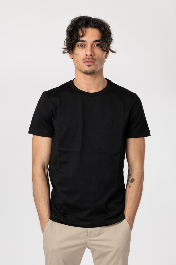 - T-Shirt tinta unita in cotone. Girocollo elasticizzato. Mezze maniche. Logo frontale ricamato tinta su tinta.