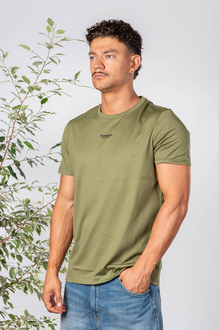 - T-Shirt tinta unita in cotone. Stampa logo sul petto.