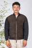 • Giubbino in pelle scamosciata. Chiusura frontale con zip in contrasto. Tasche a filo laterali chiusura zip. Maniche in lana. Polsini e fondo con bastonetto.