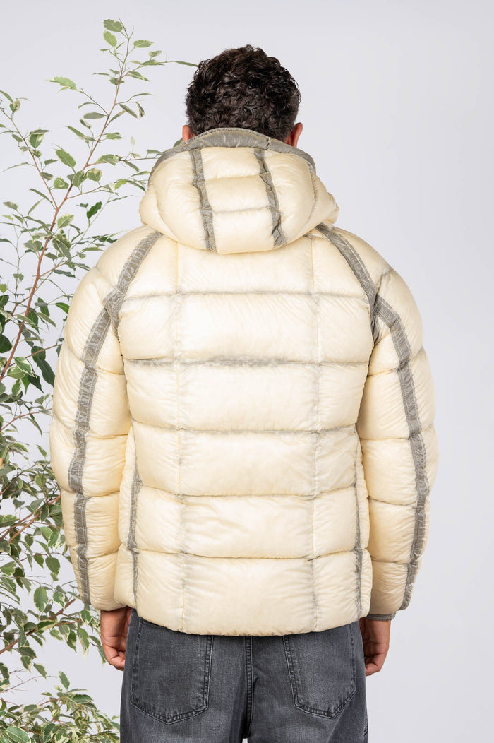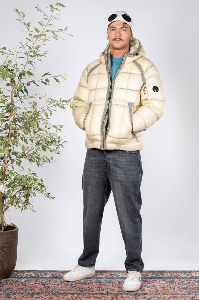- Piumino in piuma d'Anatra tinta unita in tessuto d.d.shell. Cappuccio con coulisse. Chiusura e tasche a zip. Taschino sulla manica con logo iconico.