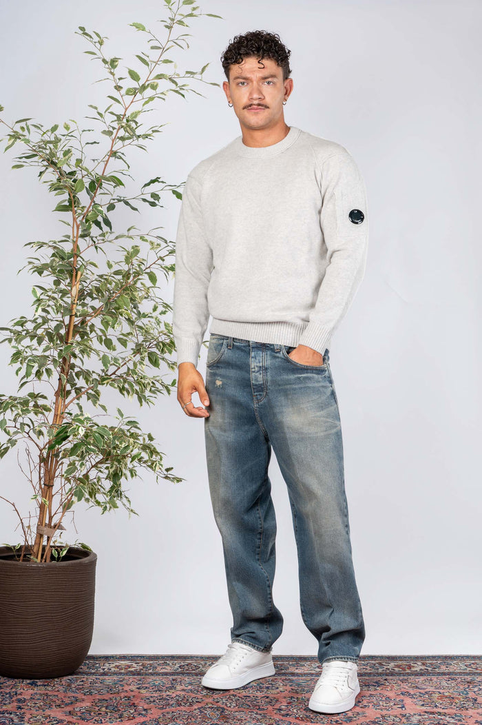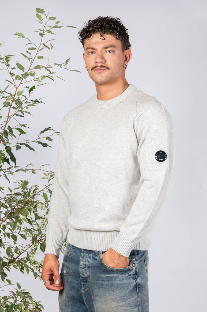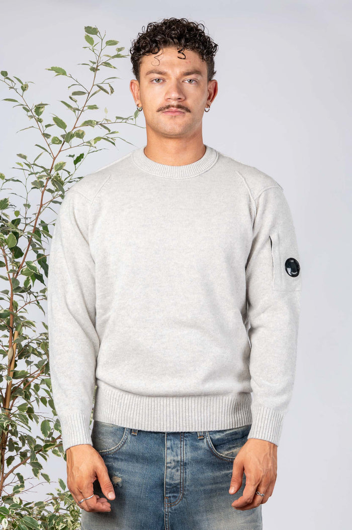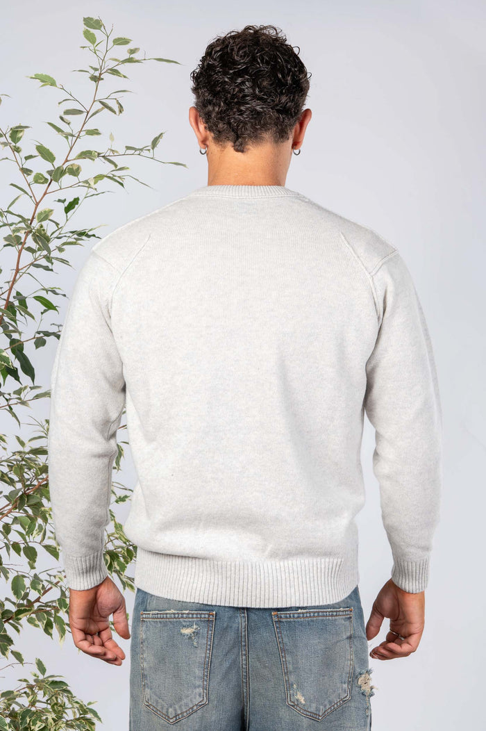 - Maglione girocollo tinta unita in misto lana. Taschino sul braccio con logo iconico. Girocollo e polsini canettati. Fondo bastonetto.