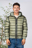 - Piumino in piuma d'Anatra tinta unita in tessuto d.d.shell. Cappuccio con coulisse. Chiusura e tasche a zip. Taschino sulla manica con logo iconico.