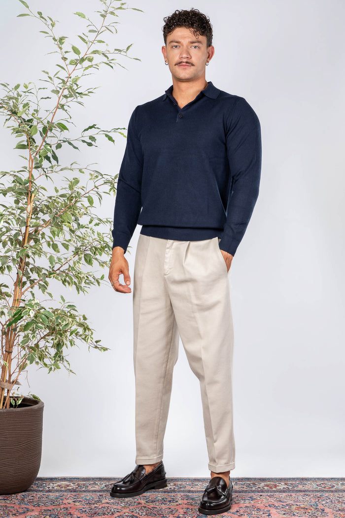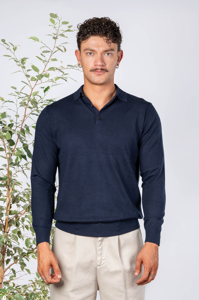 - Polo tinta unita in misto cashmere. Collo camicia con bottoni. Maniche lunghe con polsino elasticizzato. Fondo con bastonetto. Made in Italy.