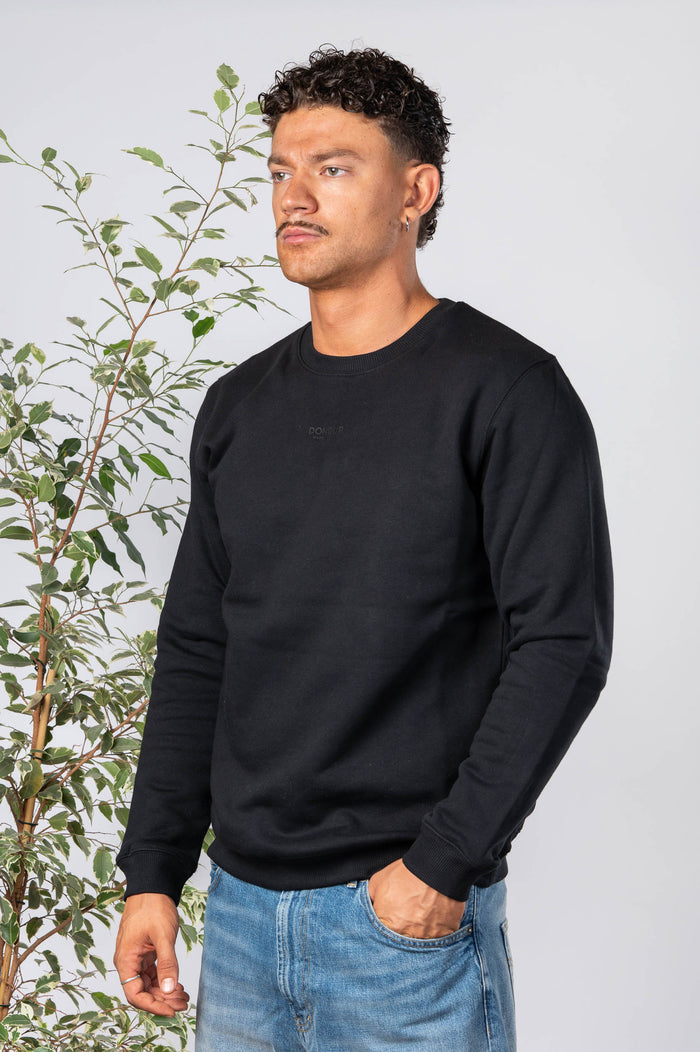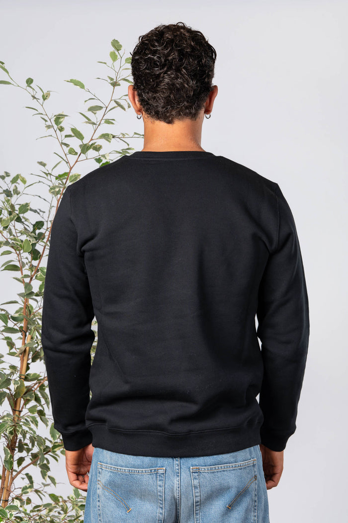 • Felpa girocollo tinta unita in cotone. Girocollo e polsini canettati. Fondo bastonetto. Stampa logo sul petto.