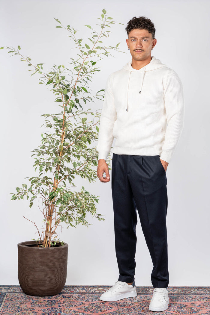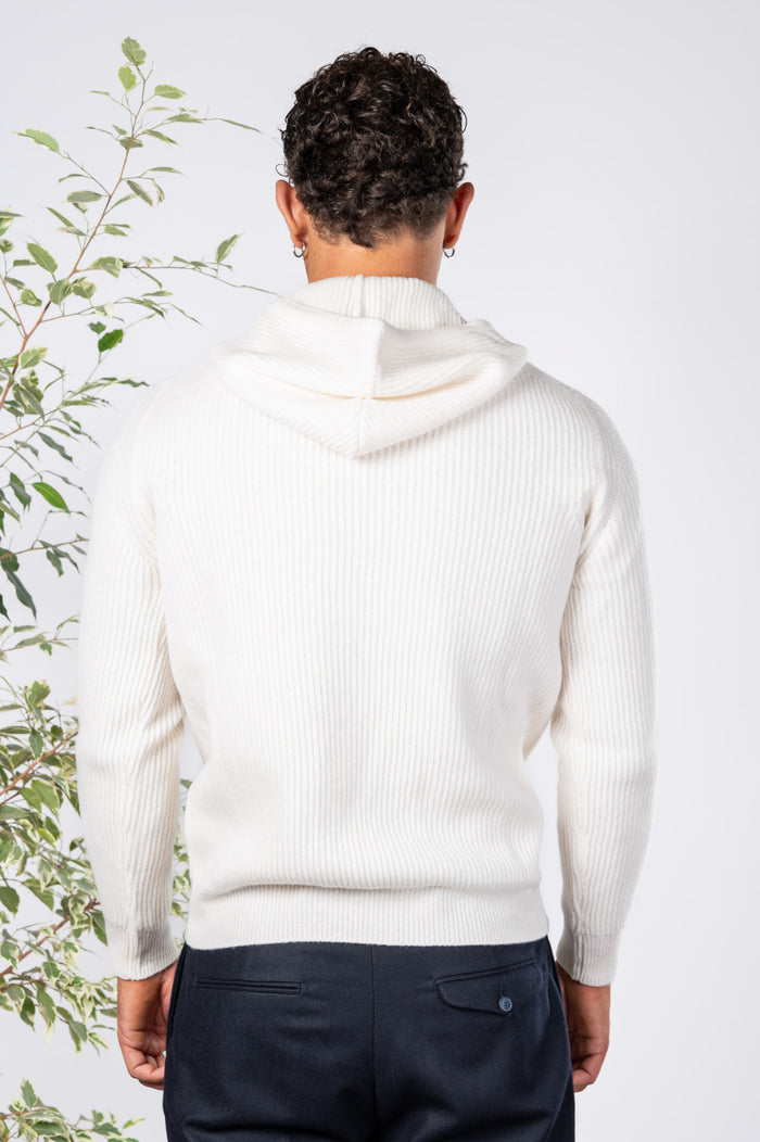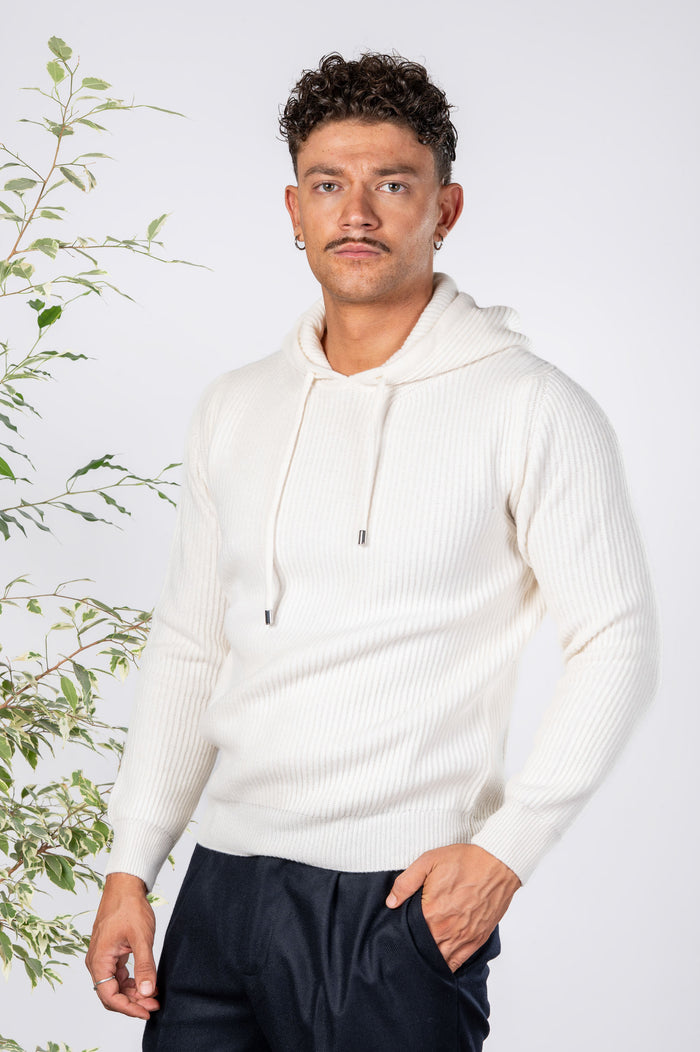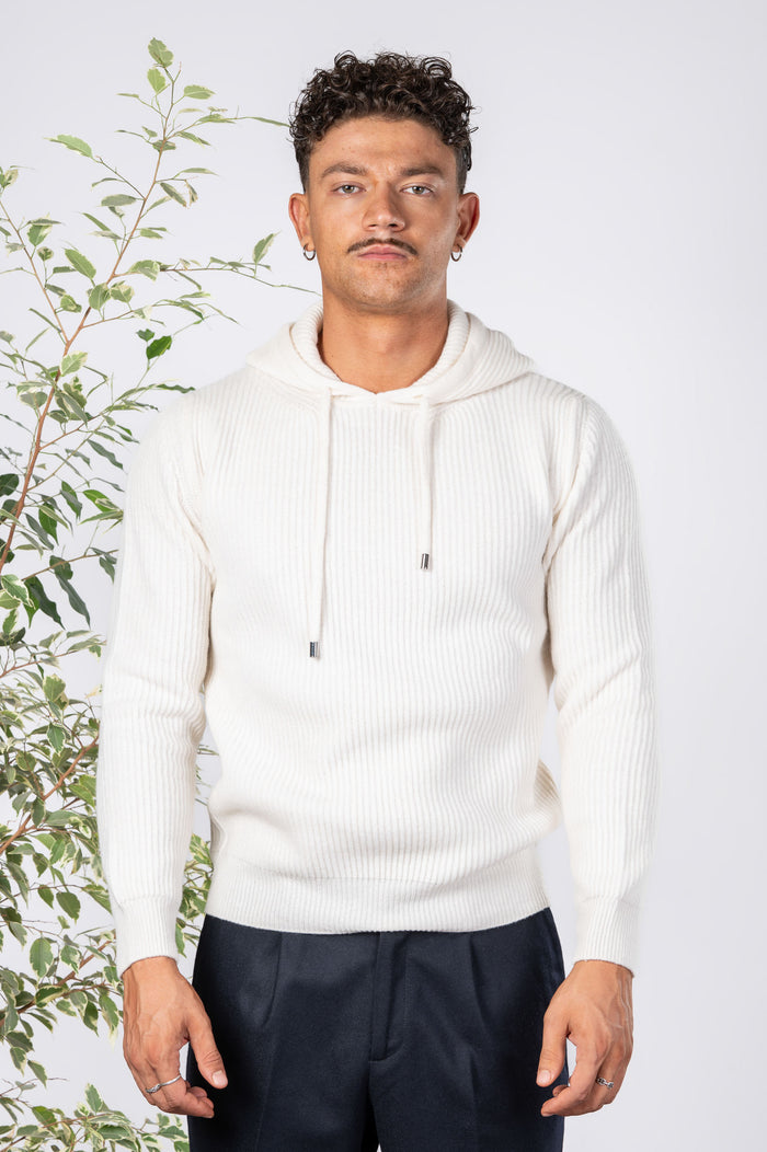 - Felpa cappuccio tinta unita canettata in lana.Fondo con bastonetto.