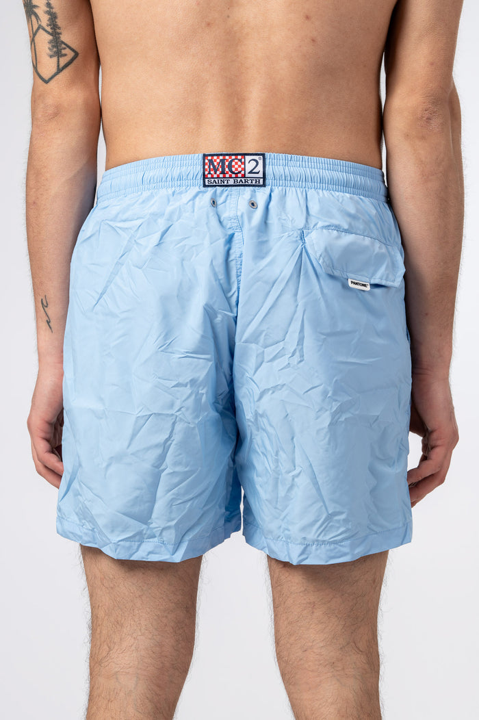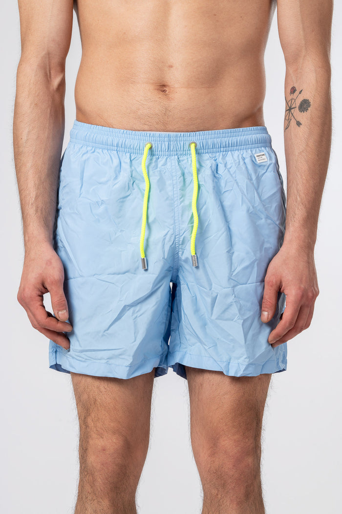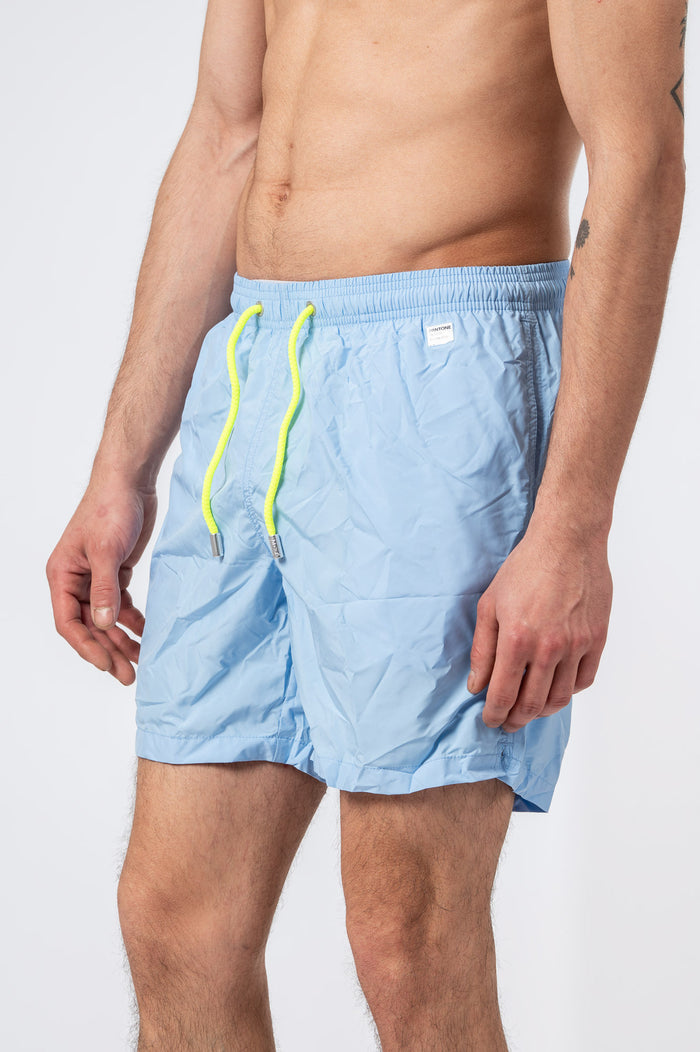- Costume da mare in nylon tecnico tinta unita. Tessuto leggero ad asciugatura ultra rapida.Vita regolare con cintura elasticizzata e cordoncini. Media lunghezza e slip interno ergonomico. Tasca anteriore e posteriore con bottone.