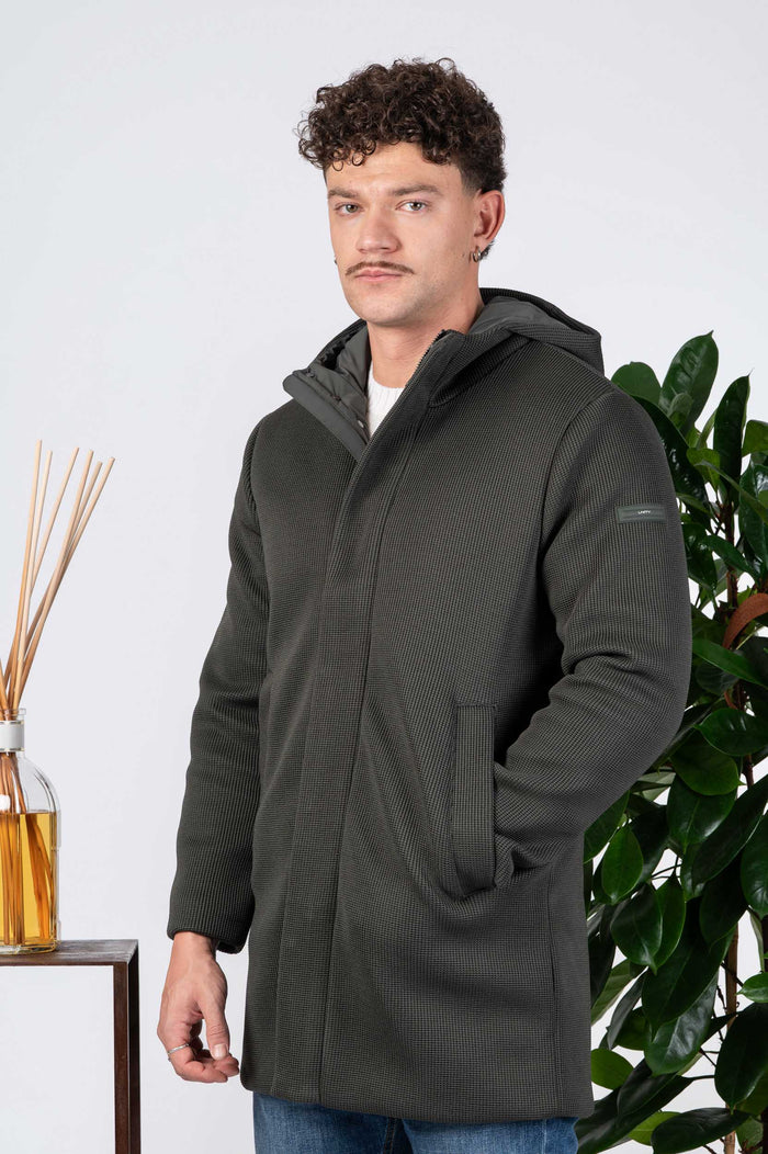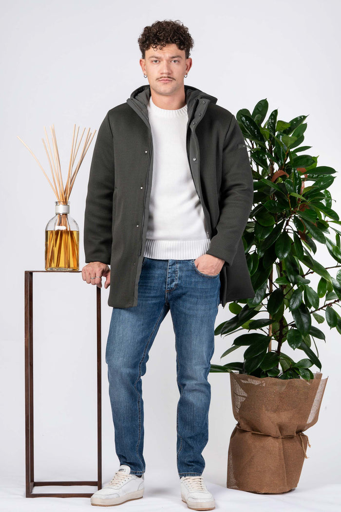 - Parka tinta unita in tessuto tecnico. Tasche a filo laterali. Chiusura con zip a scomparsa.